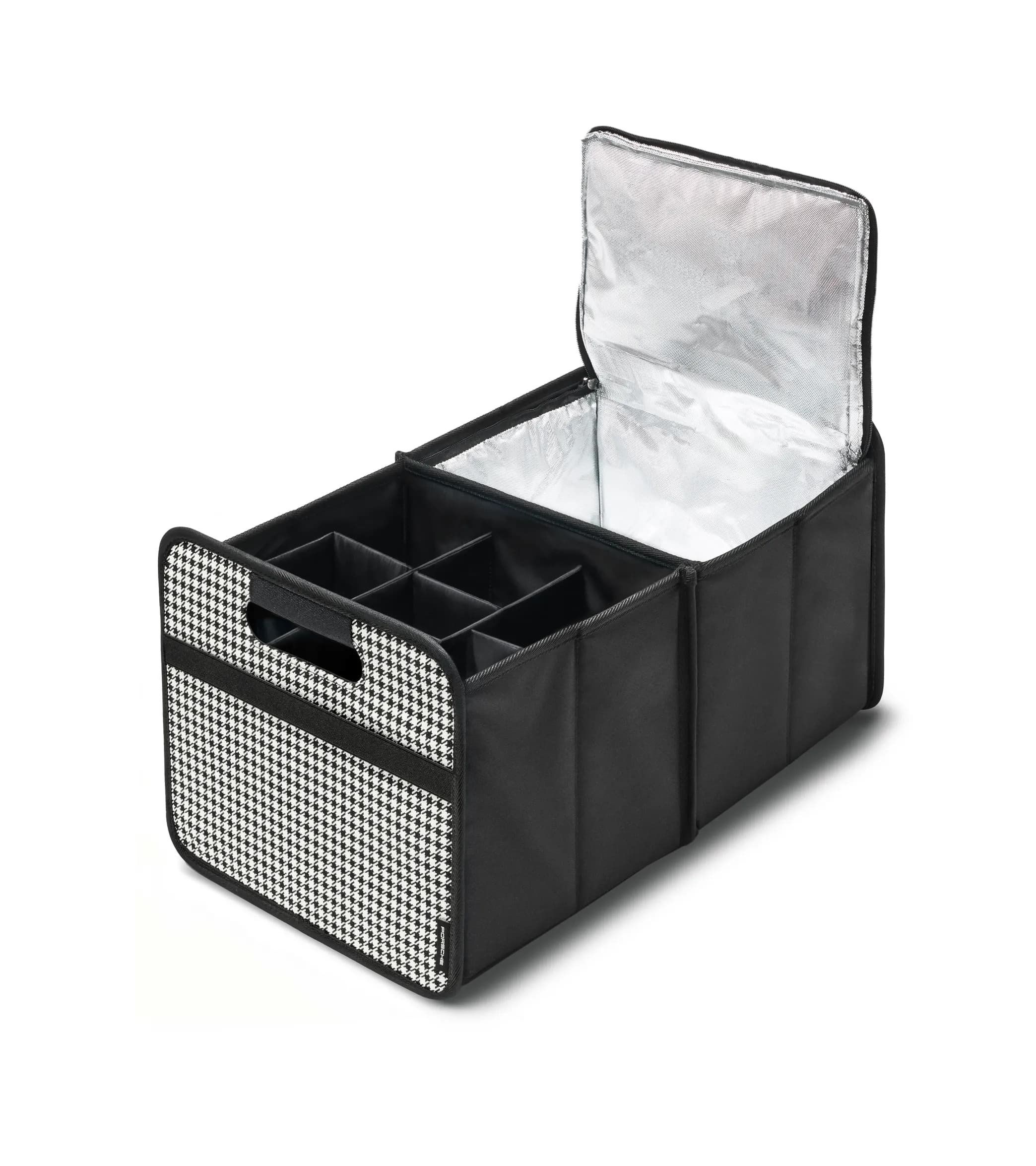 De vackraste platserna i världen blir ännu vackrare med en lyckad picknick. Med kylväskan har du alltid något fräscht att hålla dig pigg med. Den svarta kylväskan passar perfekt i ena halvan av bagagerumsboxen och kan också öppnas inuti bagagerumsväskan tack vare dragkedjan upptill med Porsche-bokstäver och går snabbt att ta ut med hjälp av bärhandtaget.
