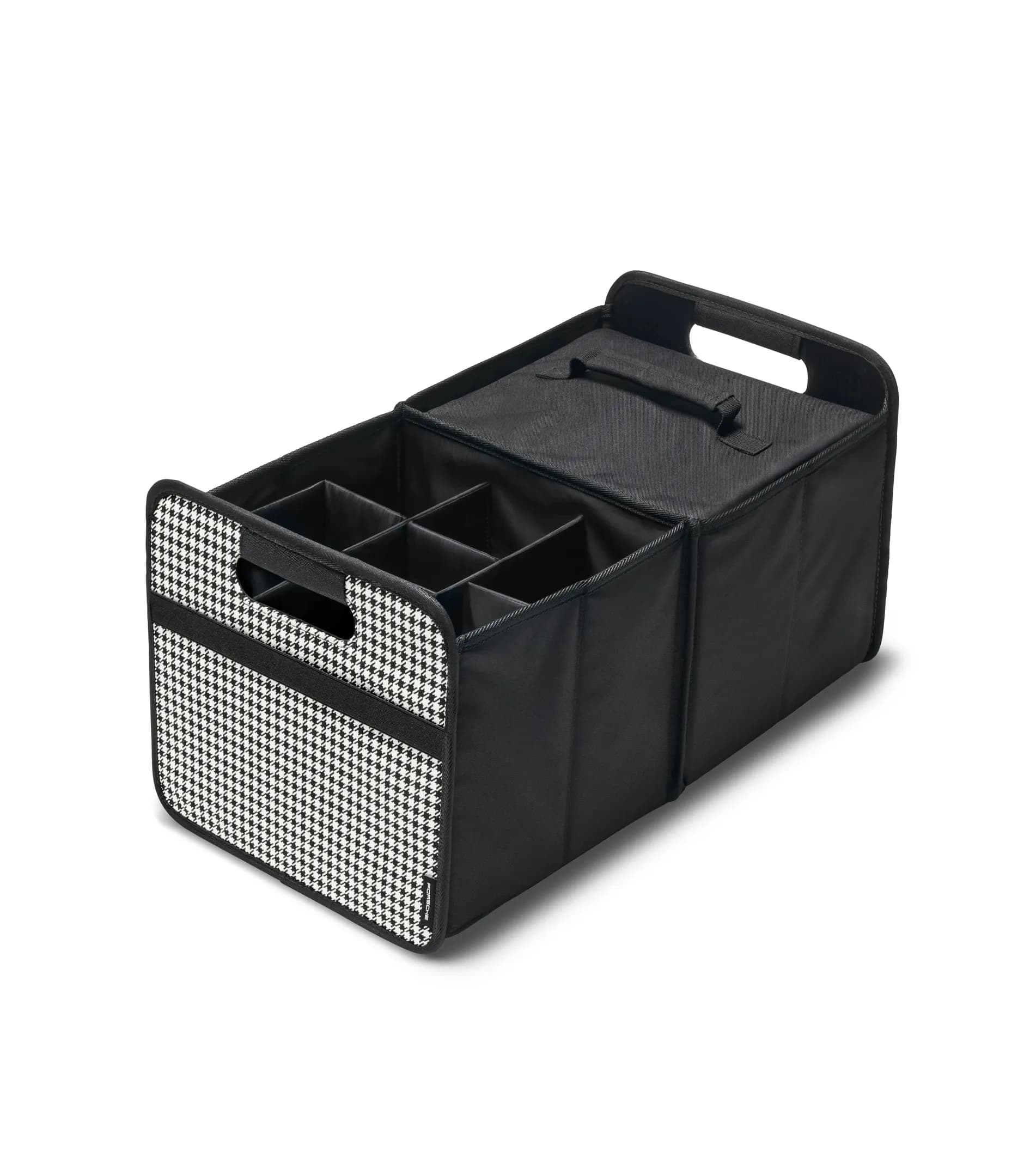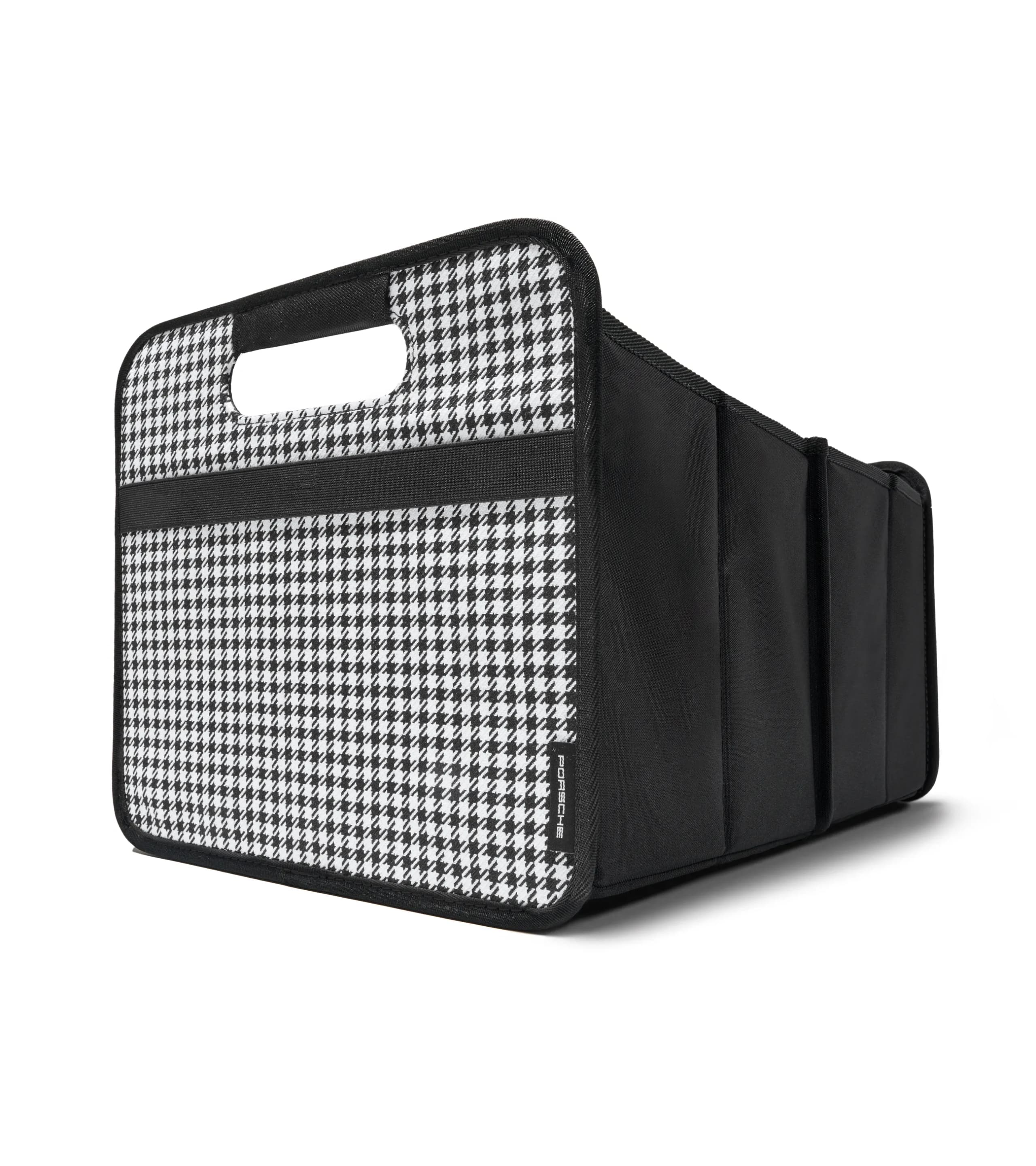 Den hopfällbara bagagerumsboxen finns både i enfärgat svart och i olika Heritage-design. Tack vare sin vikteknik kan den fällas ihop till minimal storlek. Boxen hålls på plats med ett elastiskt band och kan även förvaras i bagageutrymmet när den inte används. I utfällt läge, med en kapacitet på 30 liter och en lastkapacitet på upp till 30 kg, har bagagerumsboxen alltid allt du behöver för din resa till hands. I utfällt läge finns det två separata förvaringsfack, vart och ett med ett sidonät för bekväm förvaring av stora och små föremål. Tack vare de praktiska handtagen på båda sidor är det enkelt att ta ut bagagerumsboxen, sätta in den igen och använda den där den behövs, även när den är fullpackad. Den kan också fällas ihop så att du bara kan använda ena sidan. Det innebär att boxen inte bara kan placeras i bagageutrymmet, utan även i fordonskupén, på kontoret och var du än behöver den. Den är inte bara mycket hållbar, den ser också bra ut. Med sitt högkvalitativa utförande, sin sofistikerade design och broderade Porsche-logotyp erbjuder den en praktisk lösning för ordning och reda med stil. De övriga tillbehören som ingår i det kompletta setet är också praktiska och utökar väskans användningsområde.