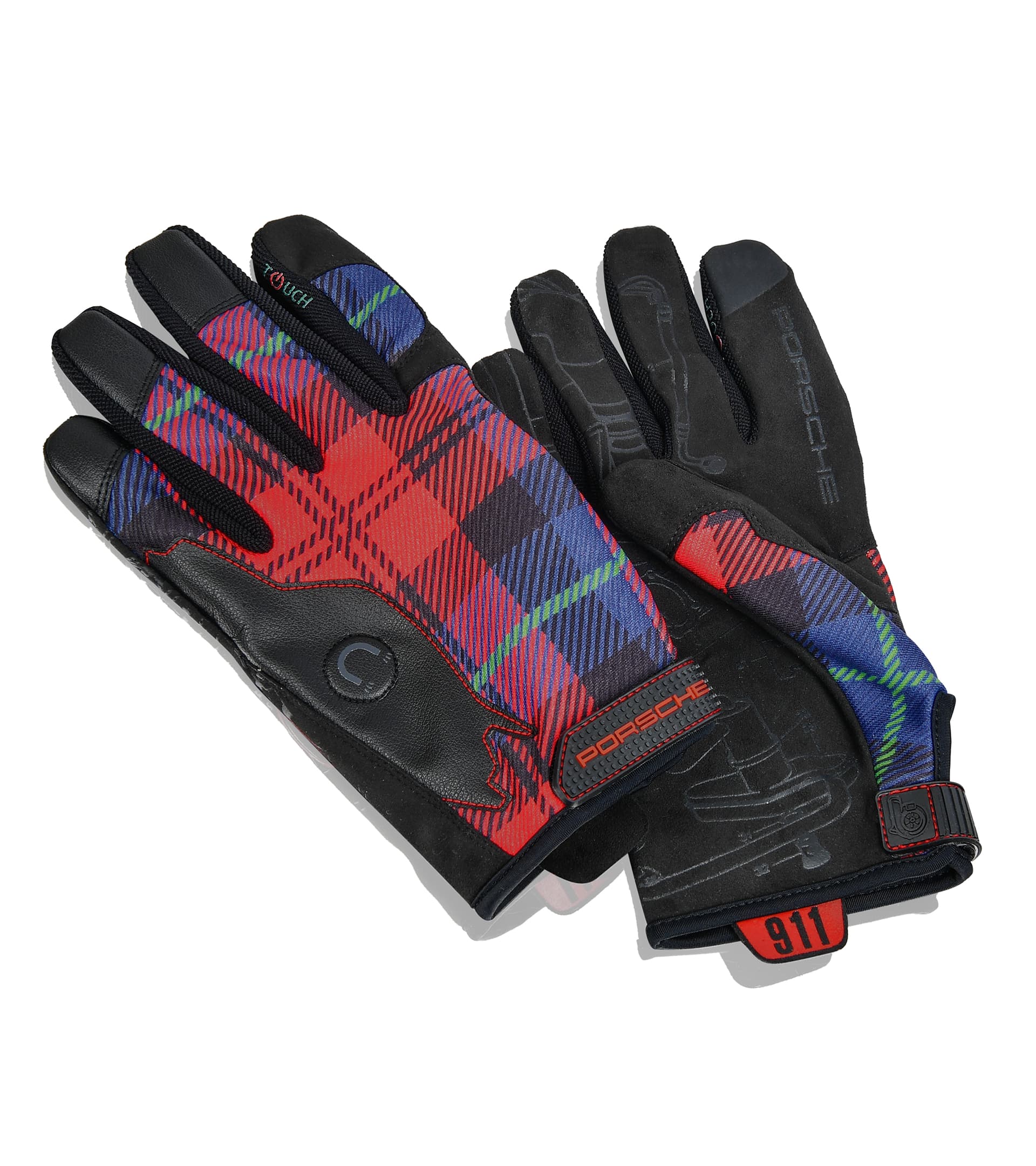 Det berömda tartanmönstret ”McLaughlan” på den första Porsche 911 Turbo, som Louise Piëch fick i present på sin 70-årsdag, har inspirerat designen av monteringshandskarna från Porsche Classic.