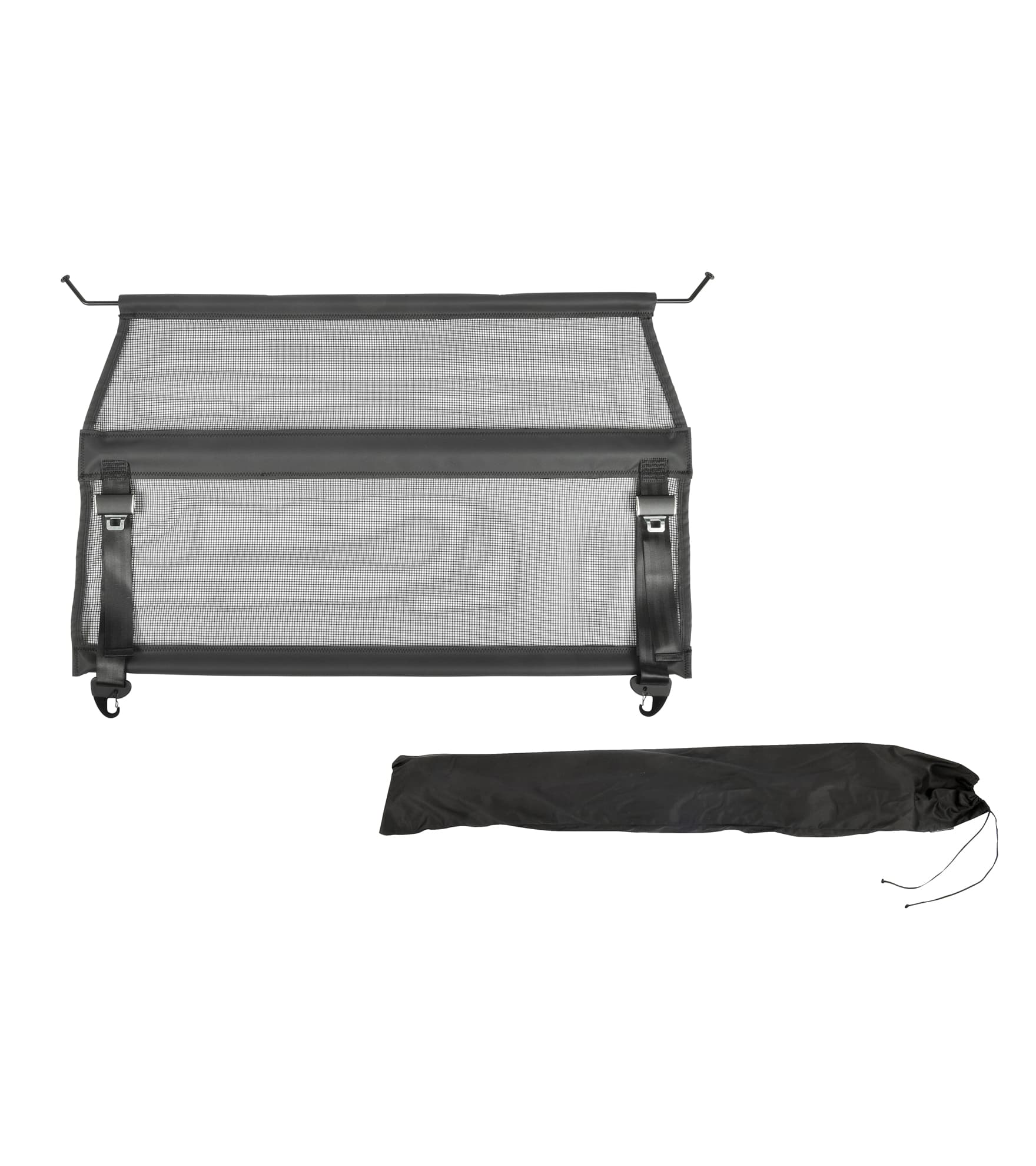 Skyddsnätet för bagageutrymmet ökar säkerheten för det lastade fordonet. Skyddsnätet kan hängas flexibelt i två lägen i innertaket.