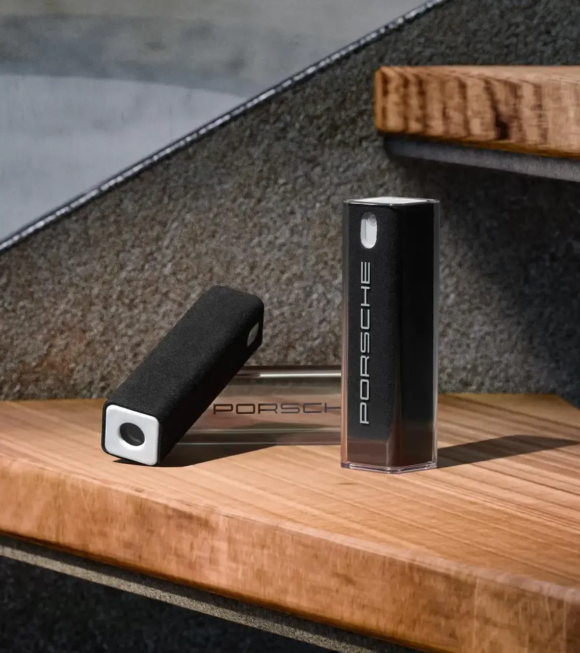 The 2-in-1 display cleaner ensures clean touchscreens without dirt or fingerprints. The display cleaner stands out both for its purist bottle design and its intelligent concept: simply spray the cleaning fluid onto the display and wipe to a streak-free shine with the bottle's microfibre sleeve. Also suitable for smartphones and tablets.