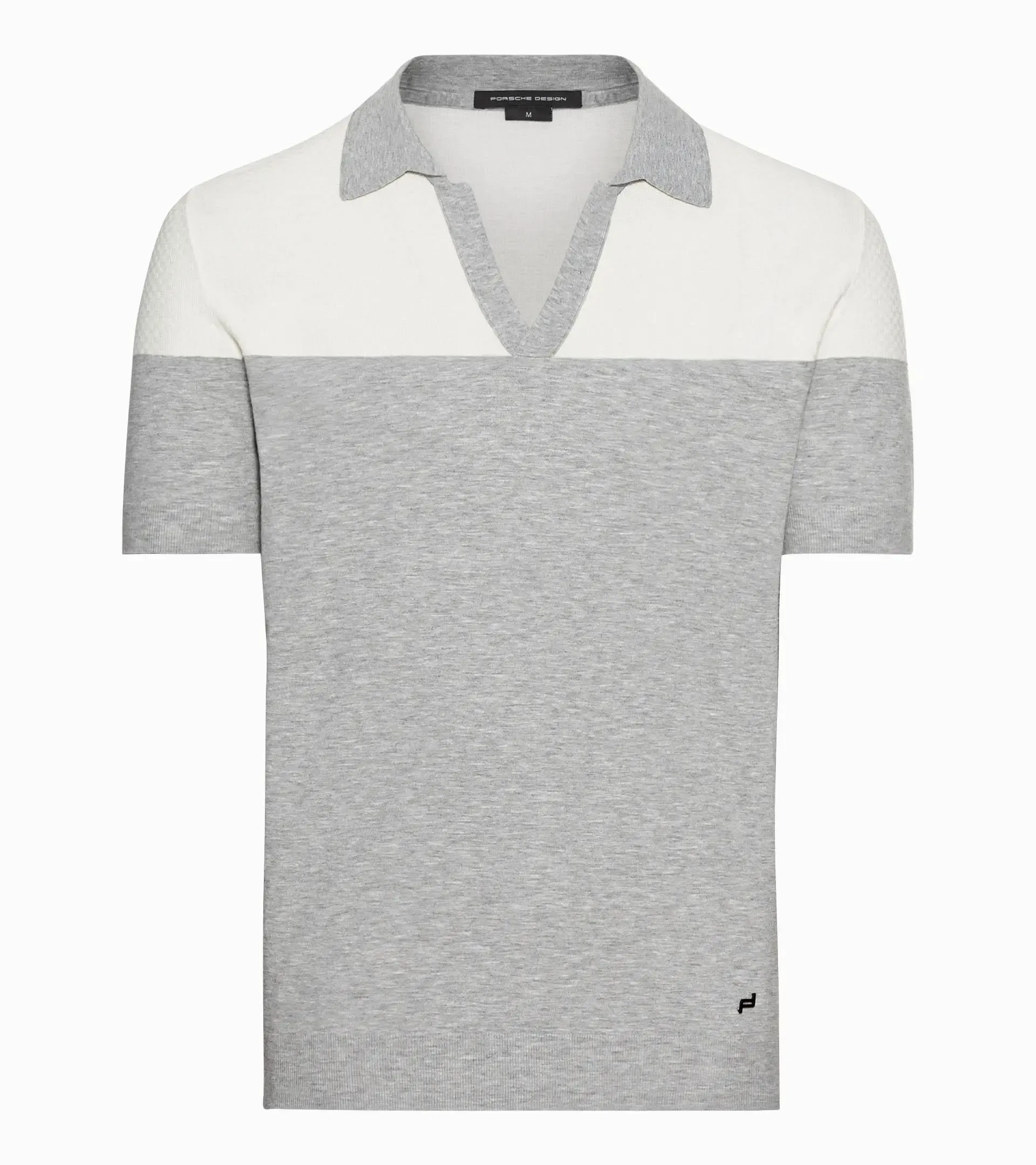 The casual alternative to a shirt: the Porsche Design Bi-Color Structured Knitted Polo is more statement than classic polo shirt. The eye-catching color block design with a top panel with TecFlex texture and a polo collar without a button placket marries the Porsche motorsport heritage and modern style. The straight-cut polo shirt is knitted from a soft material, and has comfortable knit cuffs on the sleeves and at the hem for the perfect fit. The metal PD Icon sewn onto the hem adds an exclusive finishing touch. A timeless men's shirt, the perfect styling partner for casual summertime looks.