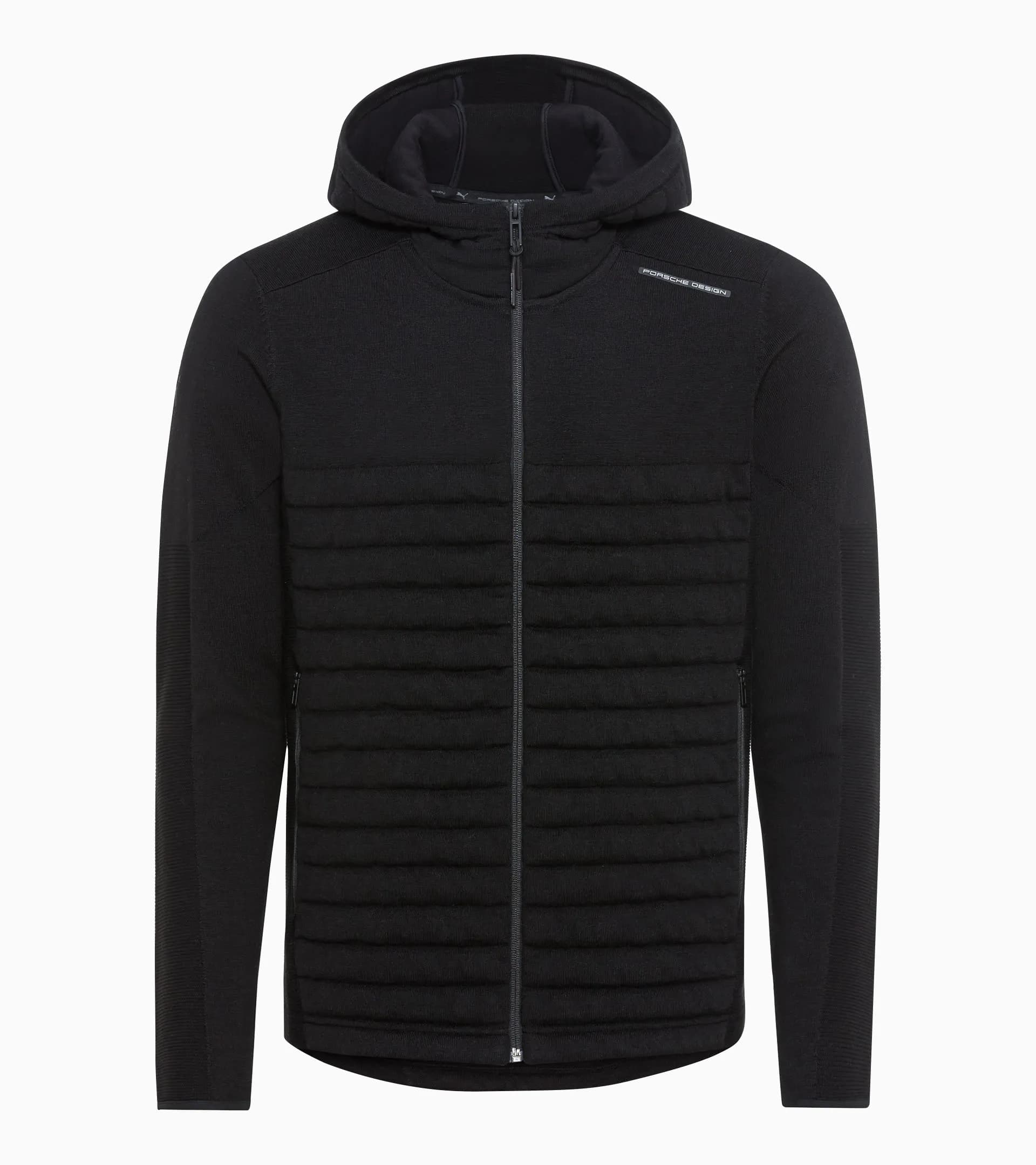 Light, warm Porsche Design jacket with merino wool. Dynamic design mix of knitwear and padding.