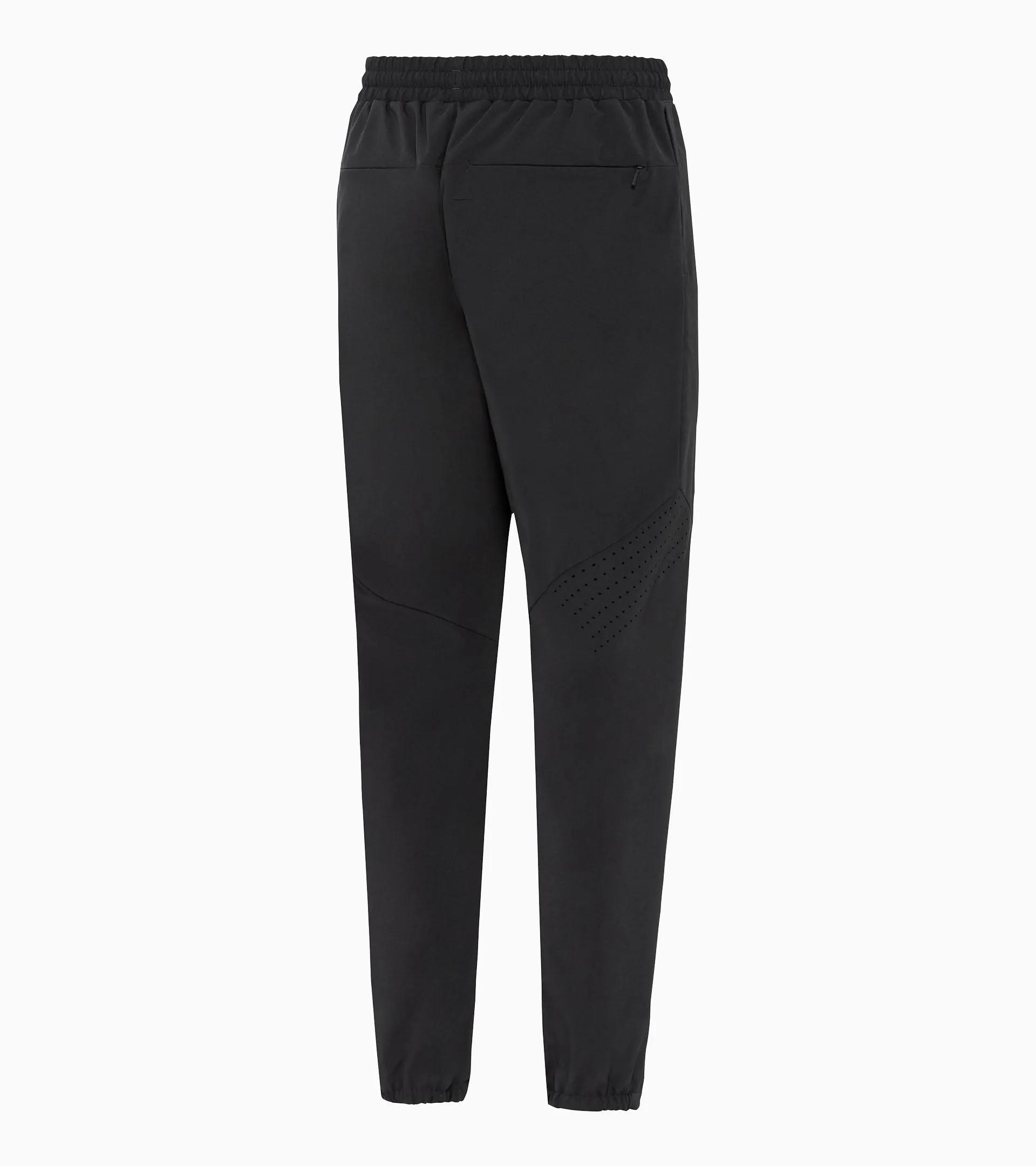 One day. One pair of pants. Countless possibilities. With the minimalist Porsche Design Woven Tech Pants, made of technical material, you'll be ready for action in an instant, and stylish to boot. The pants are extremely easy to move around in and quick-drying thanks to the woven stretch material, with a high proportion of recycled polyester and dryCELL technology. They're also extremely comfortable to wear, with their breathable mesh lining, smooth lining in the ankle area, elasticated drawstring waistband, and perforated areas in the hollows of the knees. The dynamic lines of the multi-panel design and sophisticated seam design, with a gathered elastic insert around one half, emphasize the technical look of the material and give the training pants a minimalist, exclusive vibe. Who knew casualwear could look this smart? Tip: Wear them with the matching Woven Tech Jacket, or with the JACQ2K Hoodie, Essential Tee, and PWRPLATE S sneakers for a versatile modern look.
