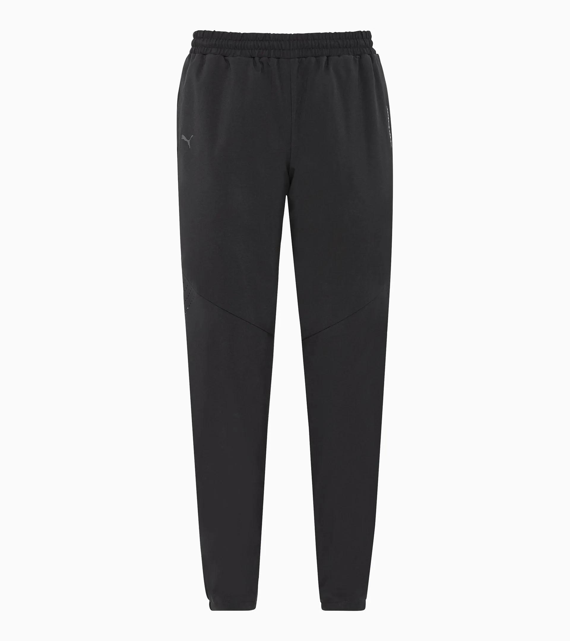 Sustainable, quick-drying designer sport pants for men. The Porsche Design x PUMA stretch training pants with mesh lining contain recycled polyester.