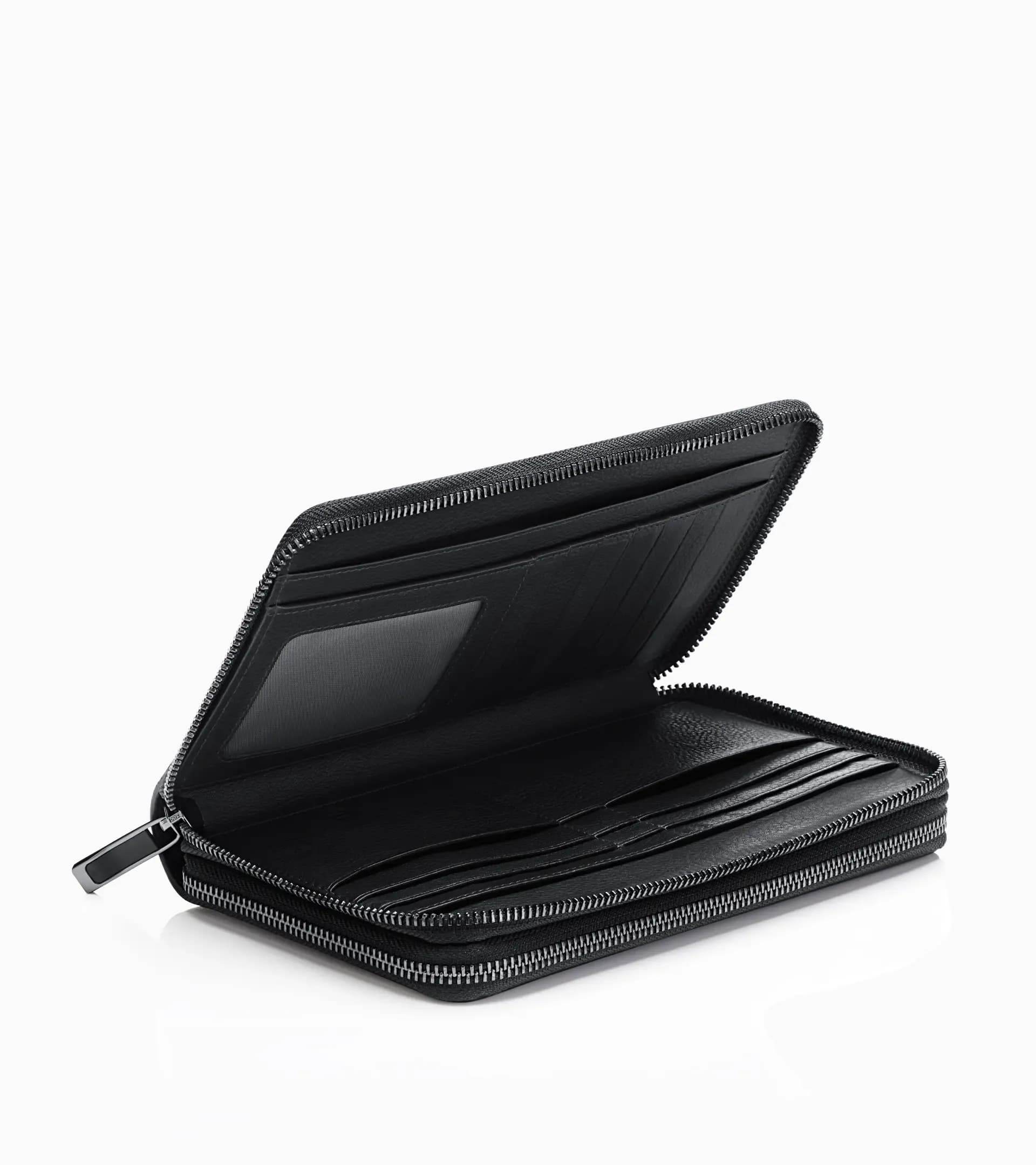 This ideal men's travel pouch, with its large format, zipper, and wrist loop, has space for all your cards, bills, coins, ID, and even your cellphone.