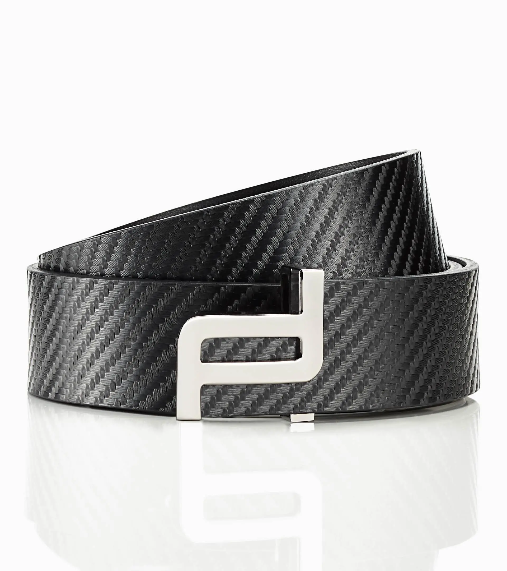 A statement piece, even at black-tie evenings: the Porsche Design Icon Belt. The buckle comes in either brushed chrome or shiny black finish and is combined with a 35 mm strap made in finest, Italian leather. Designed and made in Austria.