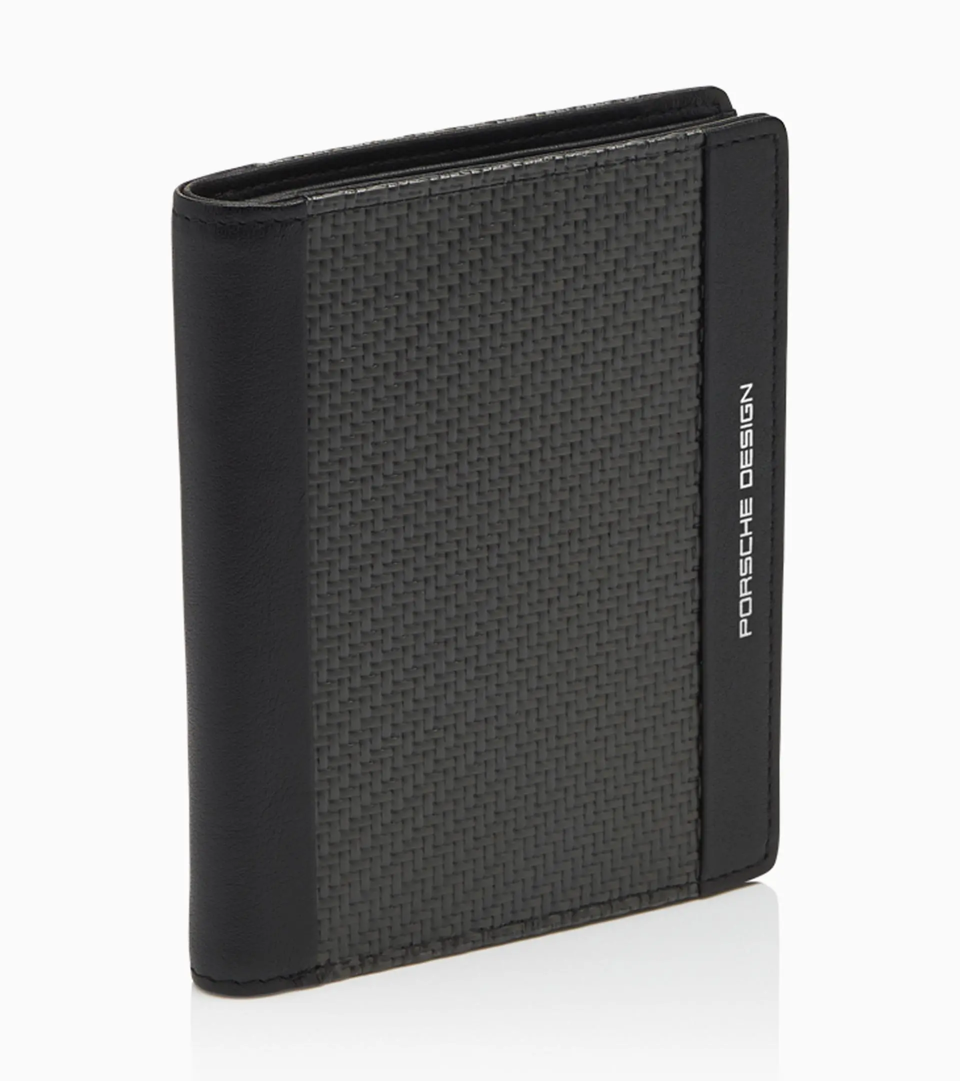 Captivating carbon, valued for decades in motorsports for its lightweight strength and extreme performance, carbon is now making its debut in an innovative series of bags from Porsche Design. The high-tech Porsche Design Carbon Wallet V11 combines the intelligent properties of carbon with minimalist design and maximum function. Black Nappa leather details accentuate the bold carbon fiber patterns on this luxuriously unique design. Two compartments for cash, eleven credit card slots and two pockets for IDs complete this practical statement piece.