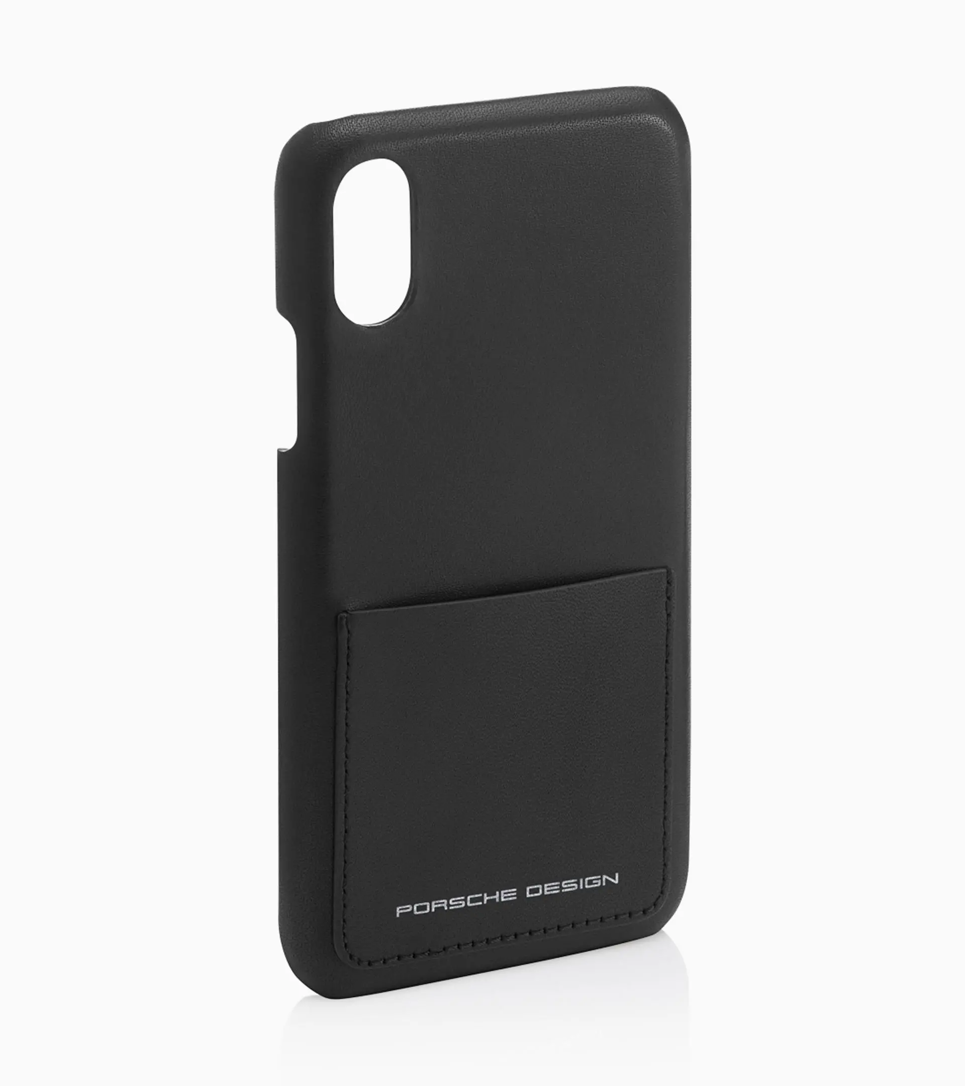 Tough, stylish performance: the Porsche Design Case iPhone is a pleasure to hold and behold. This slim-line smartphone case is made of premium genuine leather applied to a robust, shock-resistant TPU shell molded to fit every angle of your Apple iPhone X, XS or XR – for effective protection against scratches and dust. An integrated slip pocket on the smooth black leather case provides space for essential cards. The embossed Porsche Design logo underscores the exclusive feel of this elegant accessory. The variation in carbon without a pocket has a more technical look and signature brand appeal. The pinnacle of form and function.