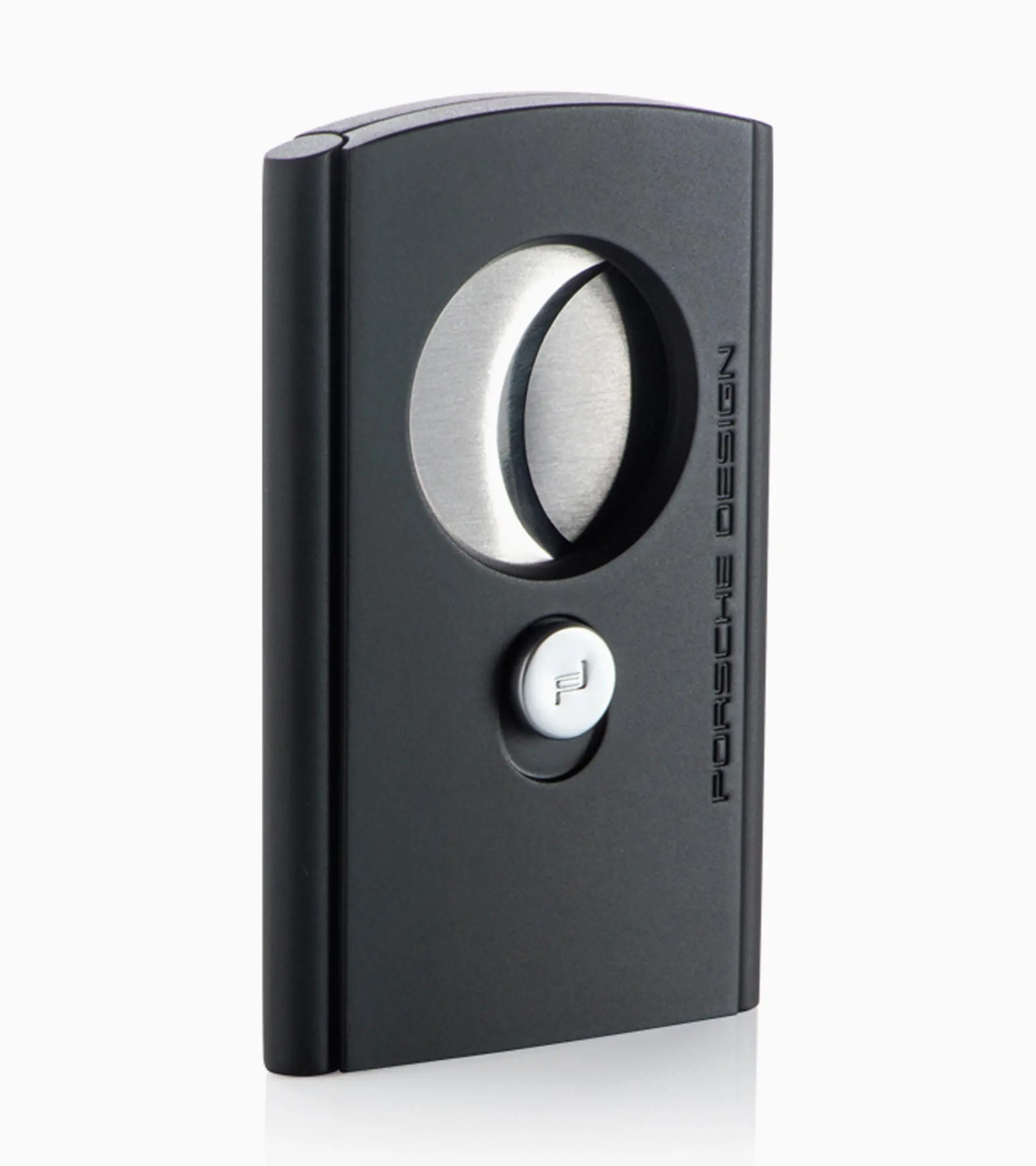 The perfect accessory for cigar enthusiasts: the Porsche Design P′3631 ‘Knurling’ lighter pairs ultimate performance with exclusive style. Distinctive edging on the both sides echoes the crown knurling on legendary Porsche Design timepieces: this technical detail not only delights the eye but also provides a better grip. The Porsche Design logo and PD Icon, both engraved, reinforce the bold design. Thanks to two adjustable jet flames, it is also possible to light cigars with larger ring gauges evenly and effectively. The integrated cigar cutter eliminates the need for additional accessories – and remains hidden when not in use. Complete with an integrated gas level window (max. 1.5g).