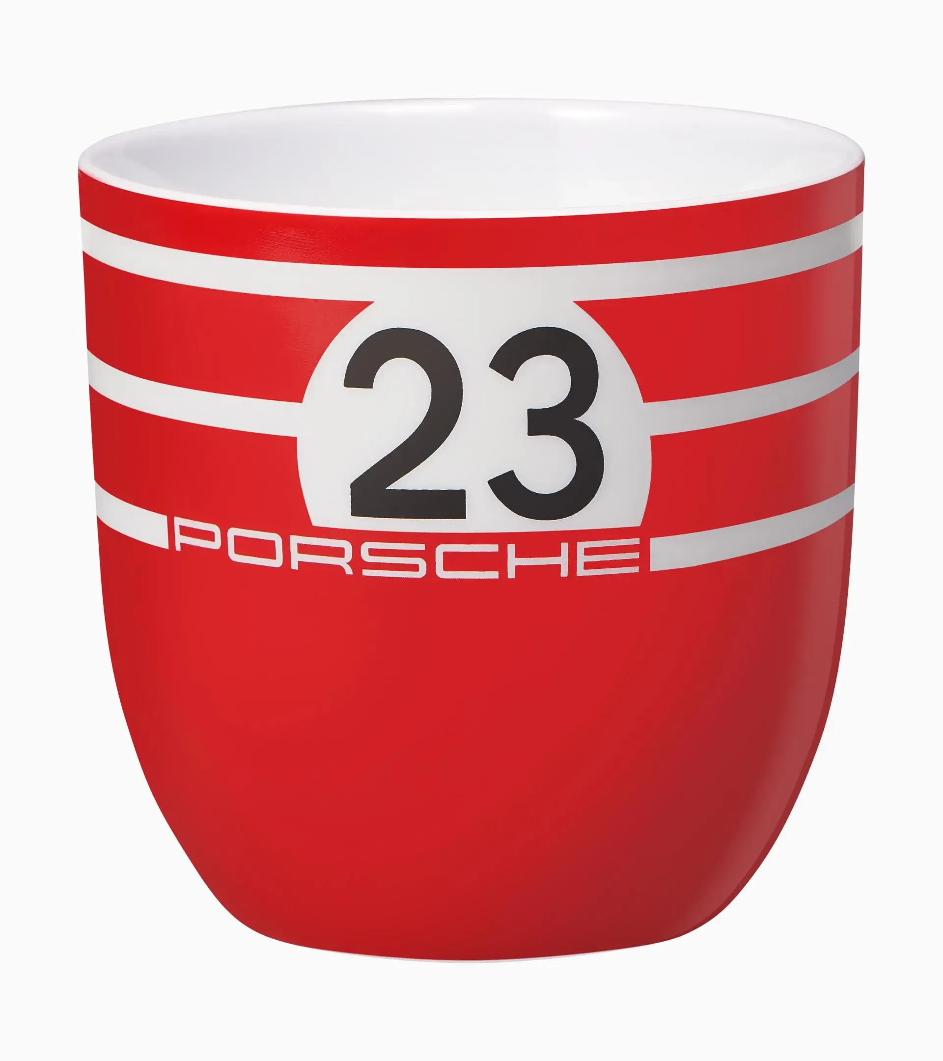 Collector’s mug no. 3 in porcelain. Porsche-exclusive porcelain shape inspired by the Porsche Crest. Design by Studio F.A. Porsche and in the look of the overall winner of the 24h of Le Mans 1970, with start number 23. In the original racing colours. With high-quality gift packaging. Dishwasher-safe.