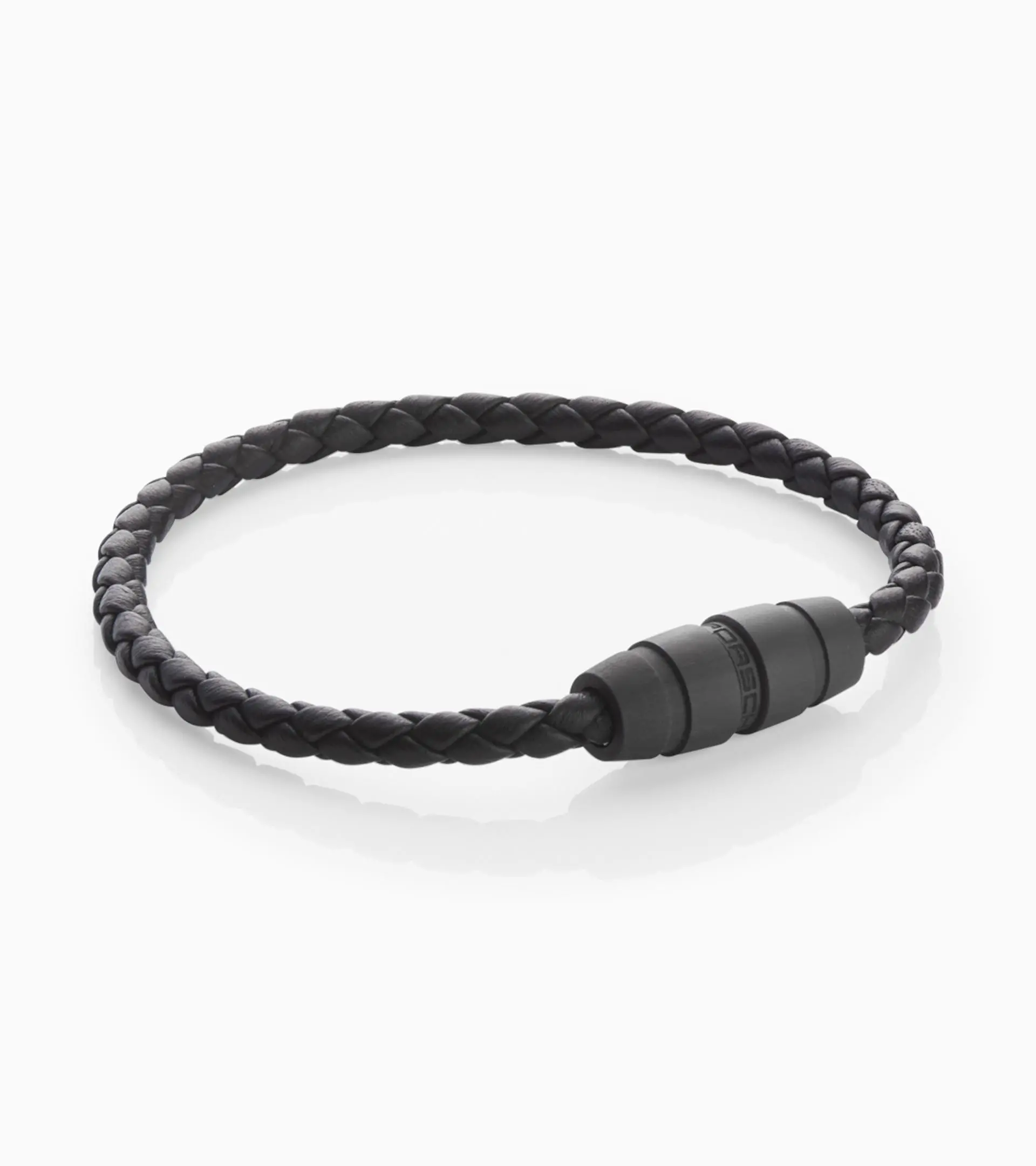 Captivating carbon: often used as a decorative accent on men’s accessories, carbon is elevated to a functional element in the Porsche Design Grooves 2.0 Bracelet Carbon. This bracelet features a 100 % carbon clasp with a magnetic core. The raw, automotive-inspired design is paired with a premium braided leather strap.