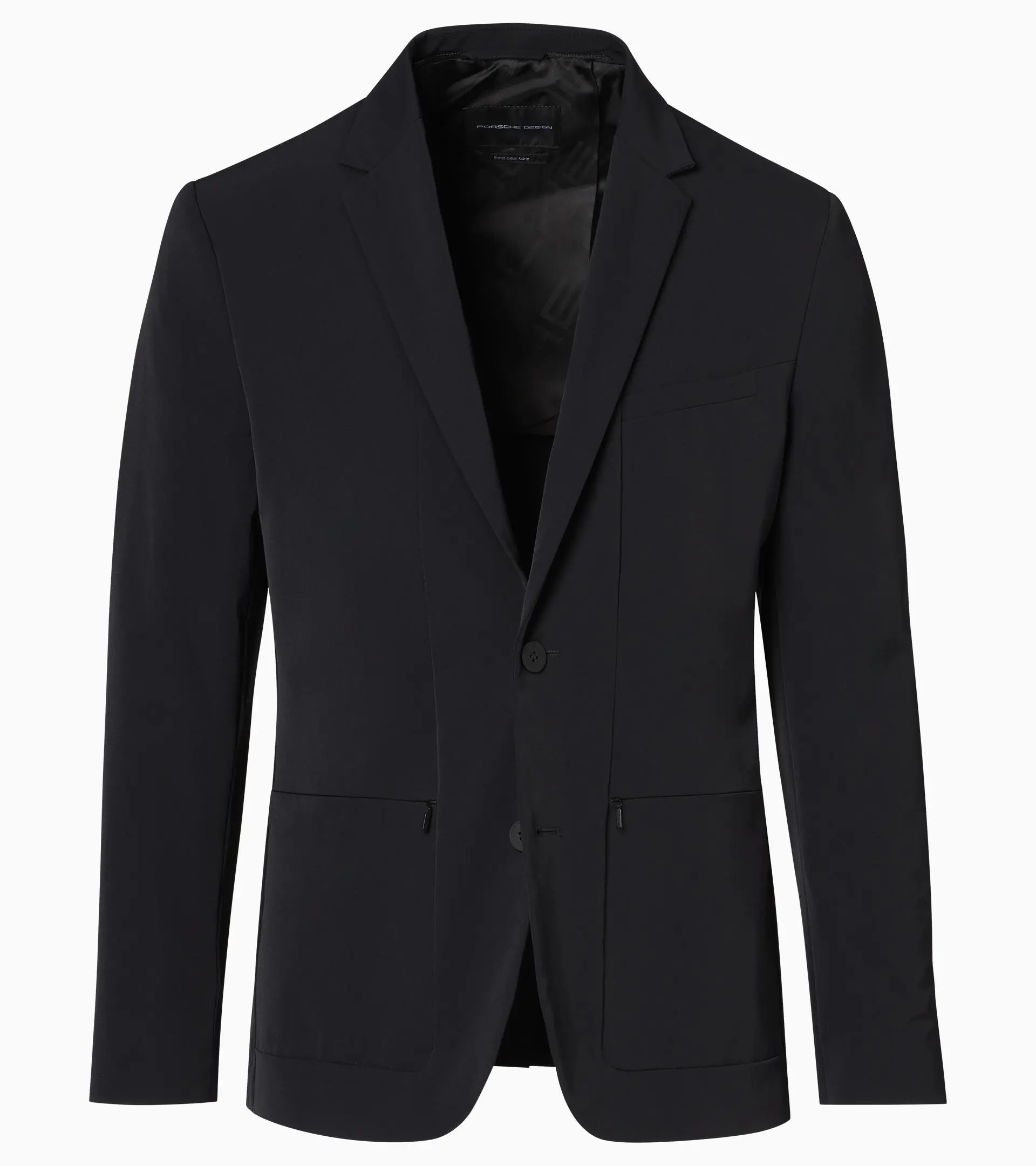 Formal, but with a sporty twist: The Porsche Design hybrid hooded hybrid blazer does both. The exclusive Italian outer fabric and the modern, almost invisible pockets give the blazer a very clean silhouette (when worn separately). Combined with the removable hood insert made of high-quality sweatshirt fabric, this creates an exciting and casual contrast—with function. The jersey insert keeps you pleasantly warm on cooler days or on the way to the office and, if needed, can easily be removed in seconds. Rubberized buttons and the Porsche Design logo cord make for small but ideal accents.