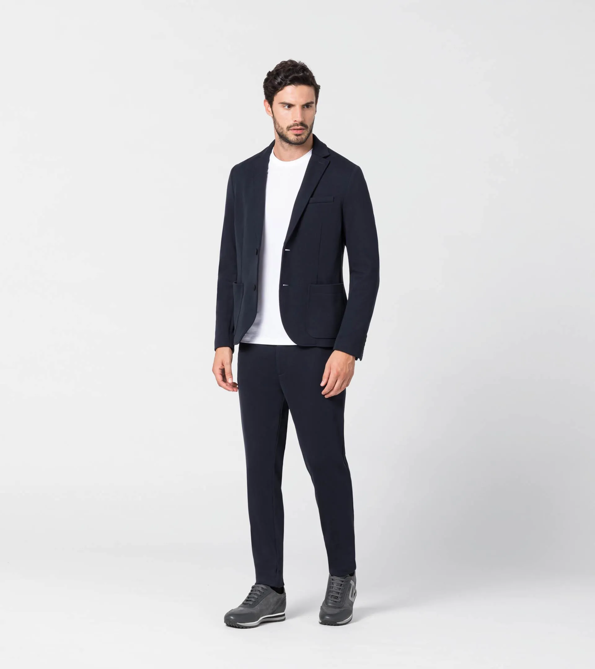 The sporty and elegant men's blazer for business and summer: knit blazer in a modern design. Can be worn as a summer suit with the matching trousers.