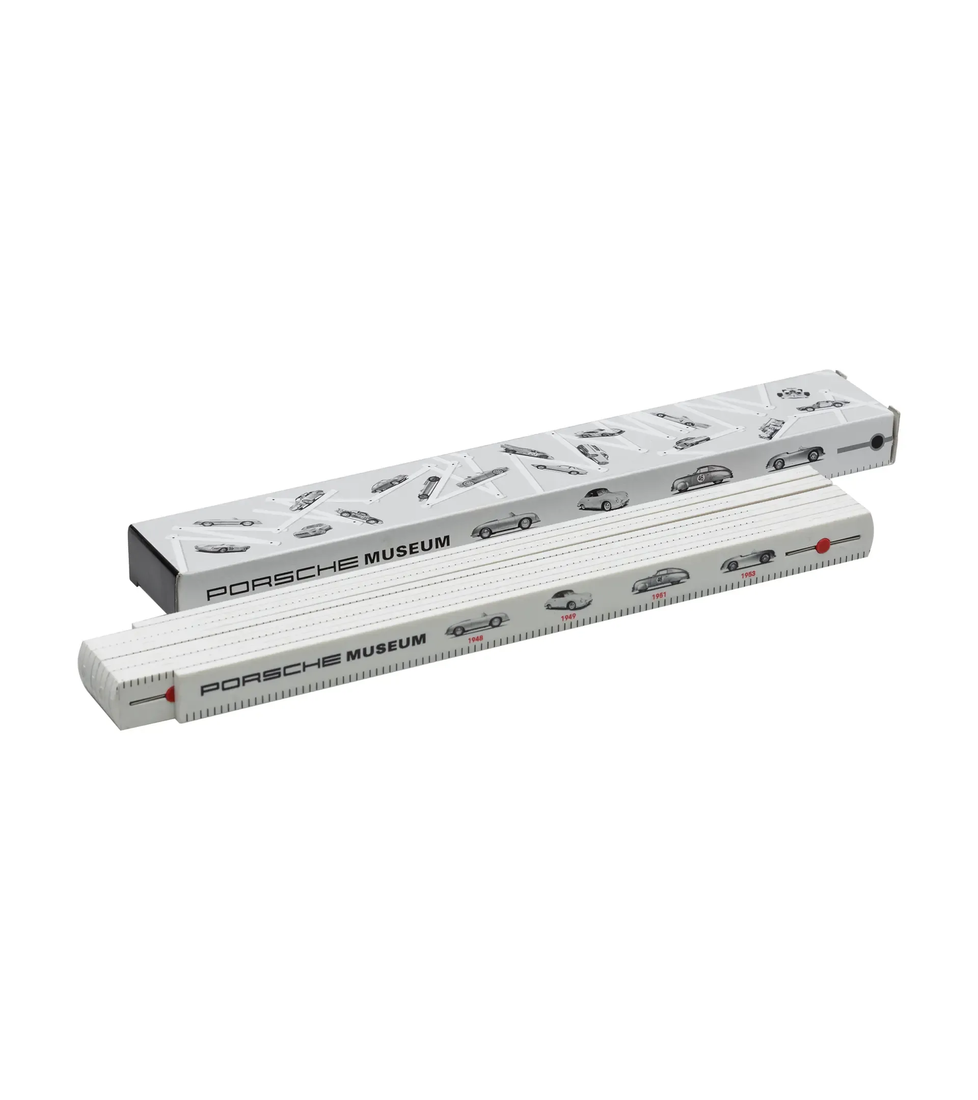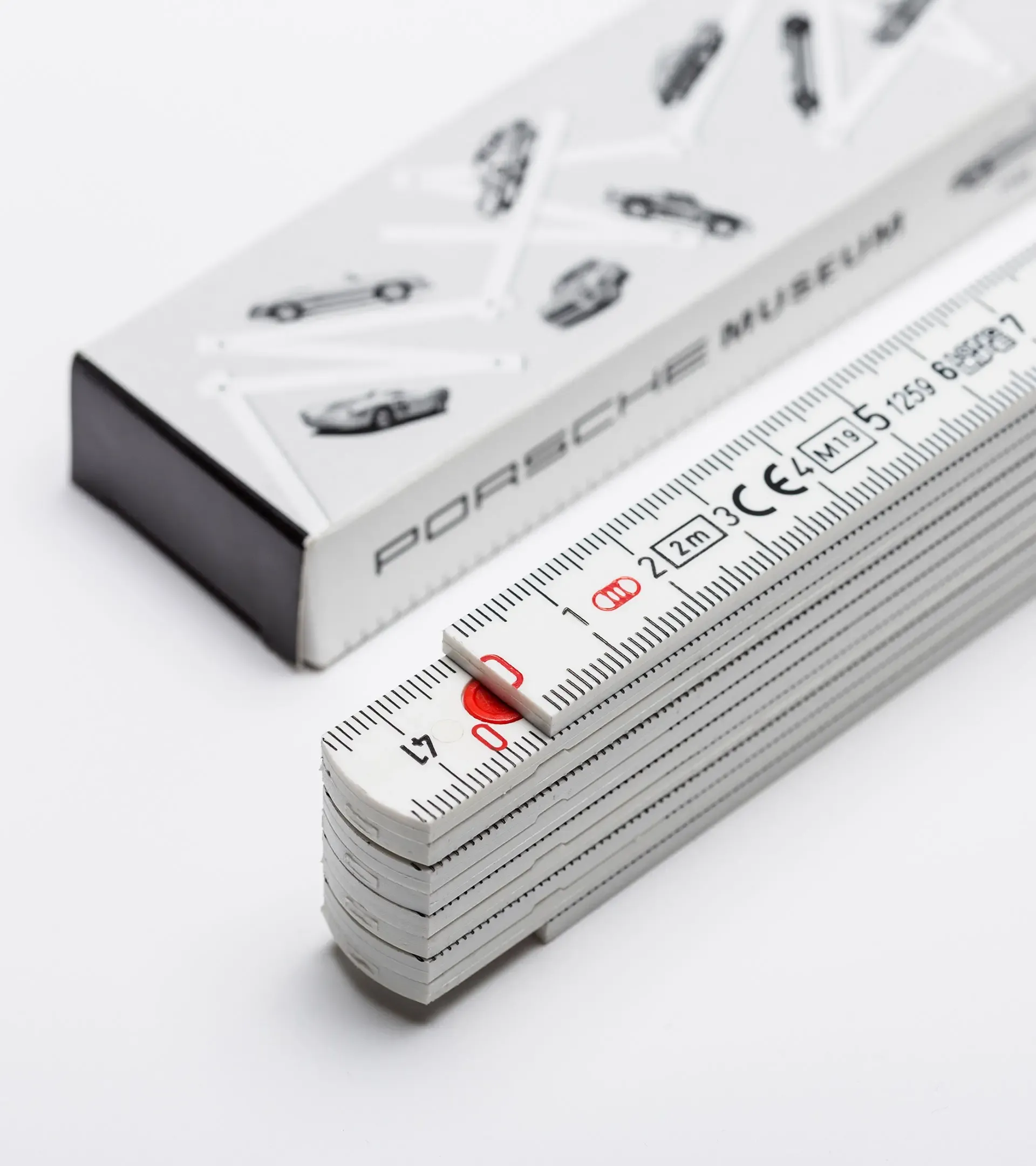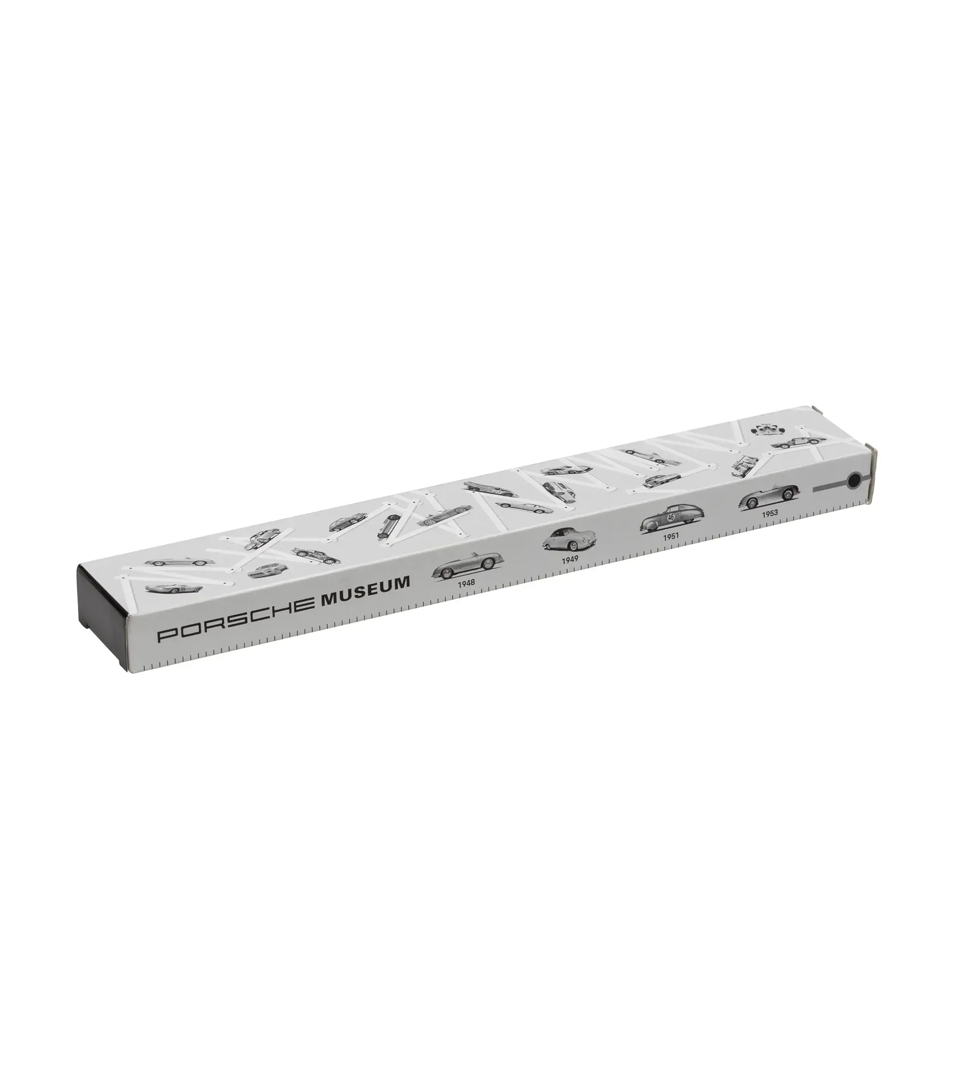 Centimeter scale on the front, model overview from the Porsche Museum on the back. 1 meter long, sturdy construction.