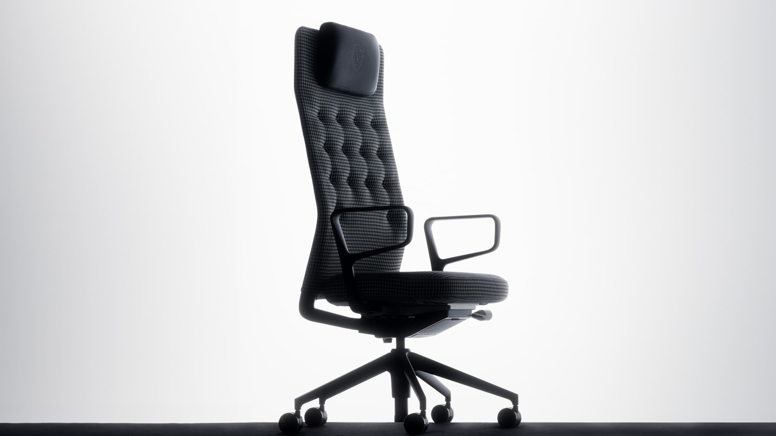 Design piece and place to relax: the Petit Repos Porsche Pepita Edition by Vitra for Porsche combines functionality and design with precise craftsmanship of high-quality materials. The seat and back of the comfortable upholstery are made of original Porsche Pepita accentuated by double stitching, seamlessly blending into the armchair's elegant look. The Petit Repos has an integrated flexible back connection, allowing the sitter to lean back and sink into the chair for even more comfort. The turnable basic dark base discreetly rounds off the design of the Petit Repos and ensures stability. Limited to 99 units.