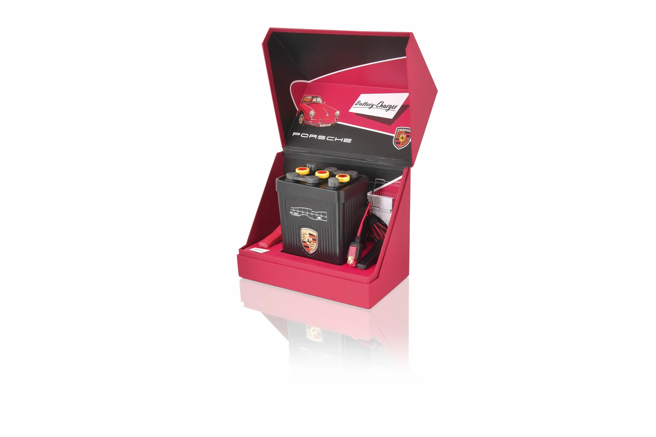 The Porsche Classic Battery Charger solves a common issue with garage-kept vehicles losing power over time. With two modes available – maintenance and charging -- the charger can either keep a battery at a proper charge level or revive a unit needing an extra boost. It’s compatible with both 6-volt and 12-volt batteries and the charger intelligently recognizes which voltage it is connected to--eliminating any second guessing--and is also able to detect the optimal charge range of batteries. With a built-in LED light on the positive red crocodile clamp, it’s never been easier to find battery terminals in dark areas.