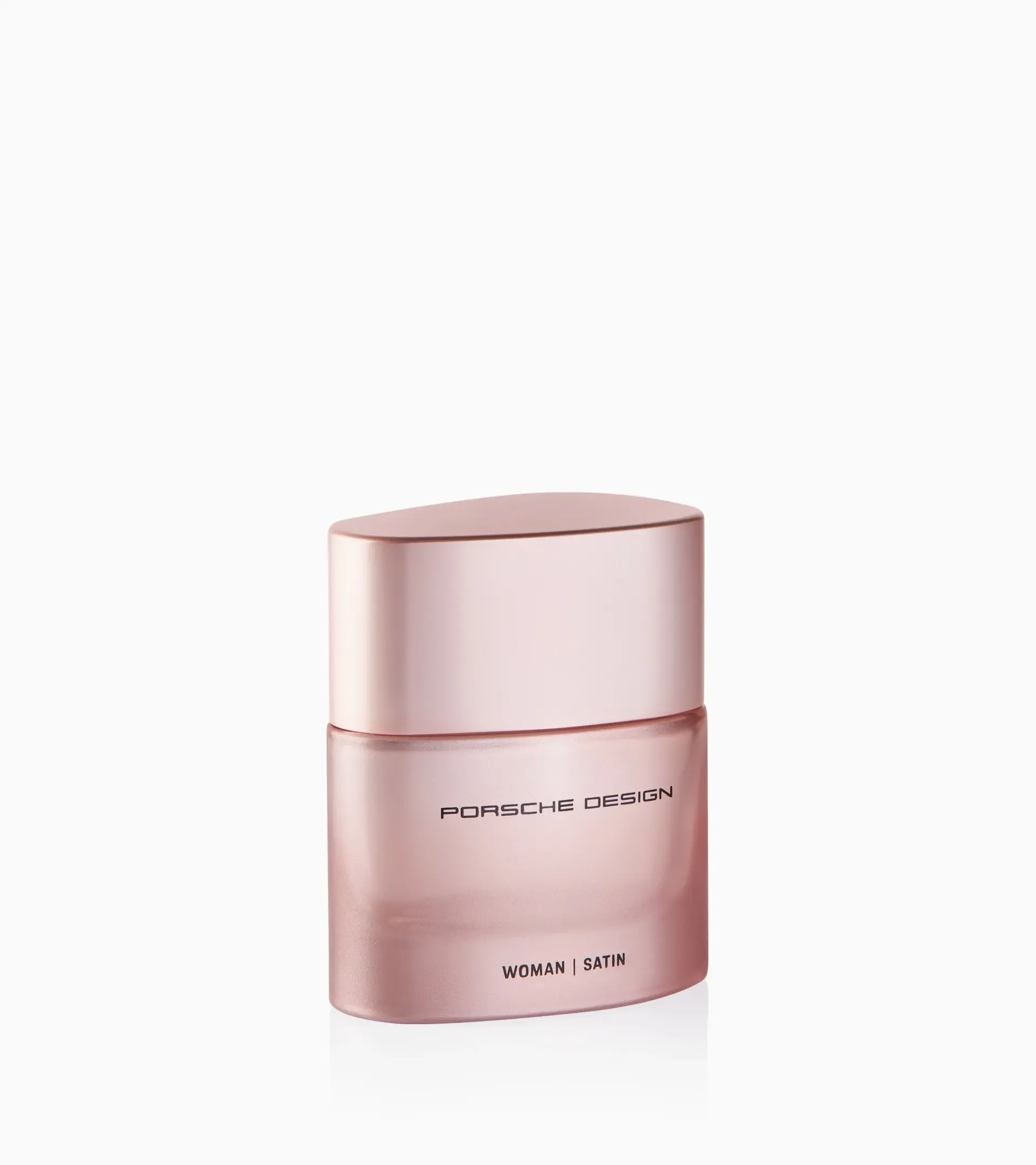 Satin Eau De Parfum exudes feminine radiance with fruity and floral notes. Peach, rose, and jasmine meet vanilla, sandalwood, and white musk for a uniquely sensual signature. The exclusive satin-inspired bottle conceals a mirror, coupling Porsche Design's sleek aesthetic with on-the-go functionality.