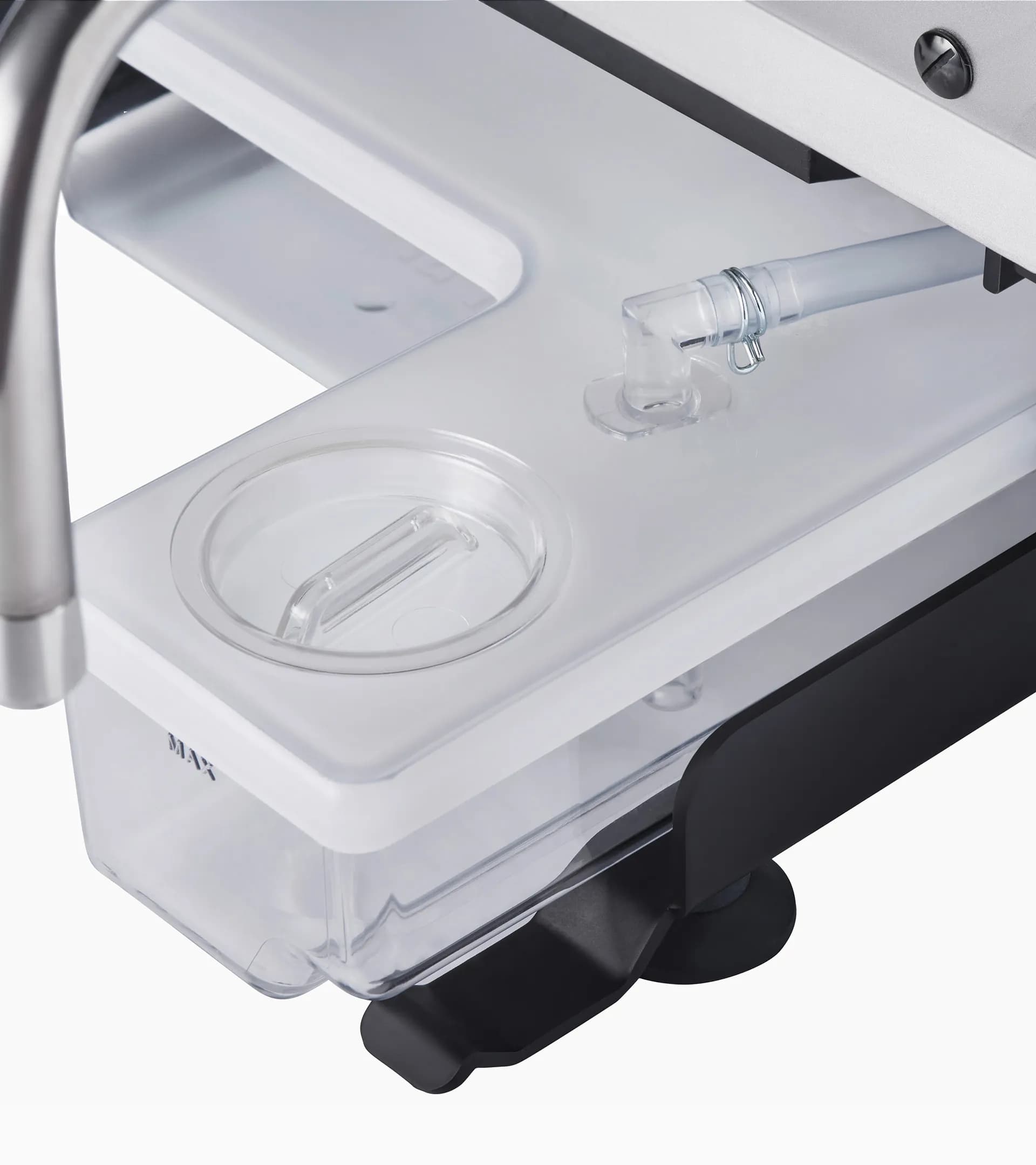 Easy to clean and ready for any occasion. The multi-portafilter is easy to clean and can be easily switched between single spout, double spout and bottomless spout. The replaceable spouts are made of hi-tech resins and thus fulfil one task above all: they do not absorb temperature and thus do not draw it out of the espresso. The mechanical brewing paddle combines timeless design with modern technology, which enables reliable control of espresso extraction. Due to the novel design, the insulated steam wand does not heat up, while at the same time offering excellent steam performance – making milk frothing child's play. The magnetic drip tray is easy to remove and ensures that the work surface always remains clean. With an easily accessible 2-liter water tank, the fixed water connection becomes optional. An additional hot water spout allows the portafilter to be rinsed quickly between shots, and the integrated LED lighting provides a perfect view of the extraction at all times.