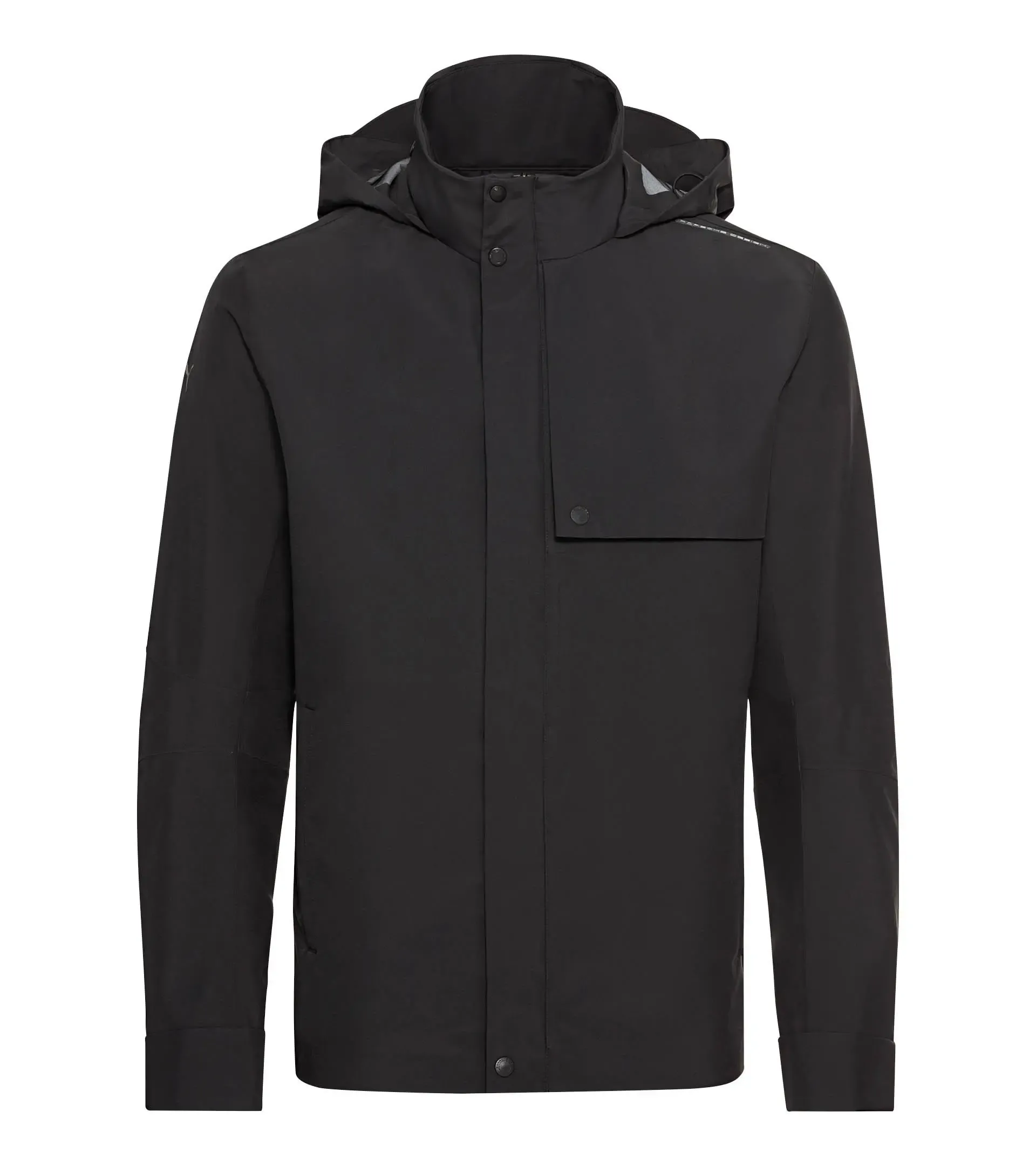 Minimalism meets motorsport. The Porsche Design Racing Jacket brings together the best of three worlds: the dynamic motorsport-inspired cut, the functional purism of Porsche Design, and particularly sustainable manufacturing using 100% recycled polyester. The outer material with stormCELL® is breathable and water-repellent, while the sealed seams inside and the stowable hood with visor enhance the protection against wind and rain. This summer jacket owes its dynamic look to the racing-inspired lines, details such as the storm flap with magnetic closure and hidden chest pocket and the stand-up collar with snap fasteners. The design of the interior with mesh inserts on the shoulder section ensure freedom of movement. Ventilation slits on the lower back yoke and adjustable cuffs, all with reflective tab details, make the sporty fit perfectly comfortable.