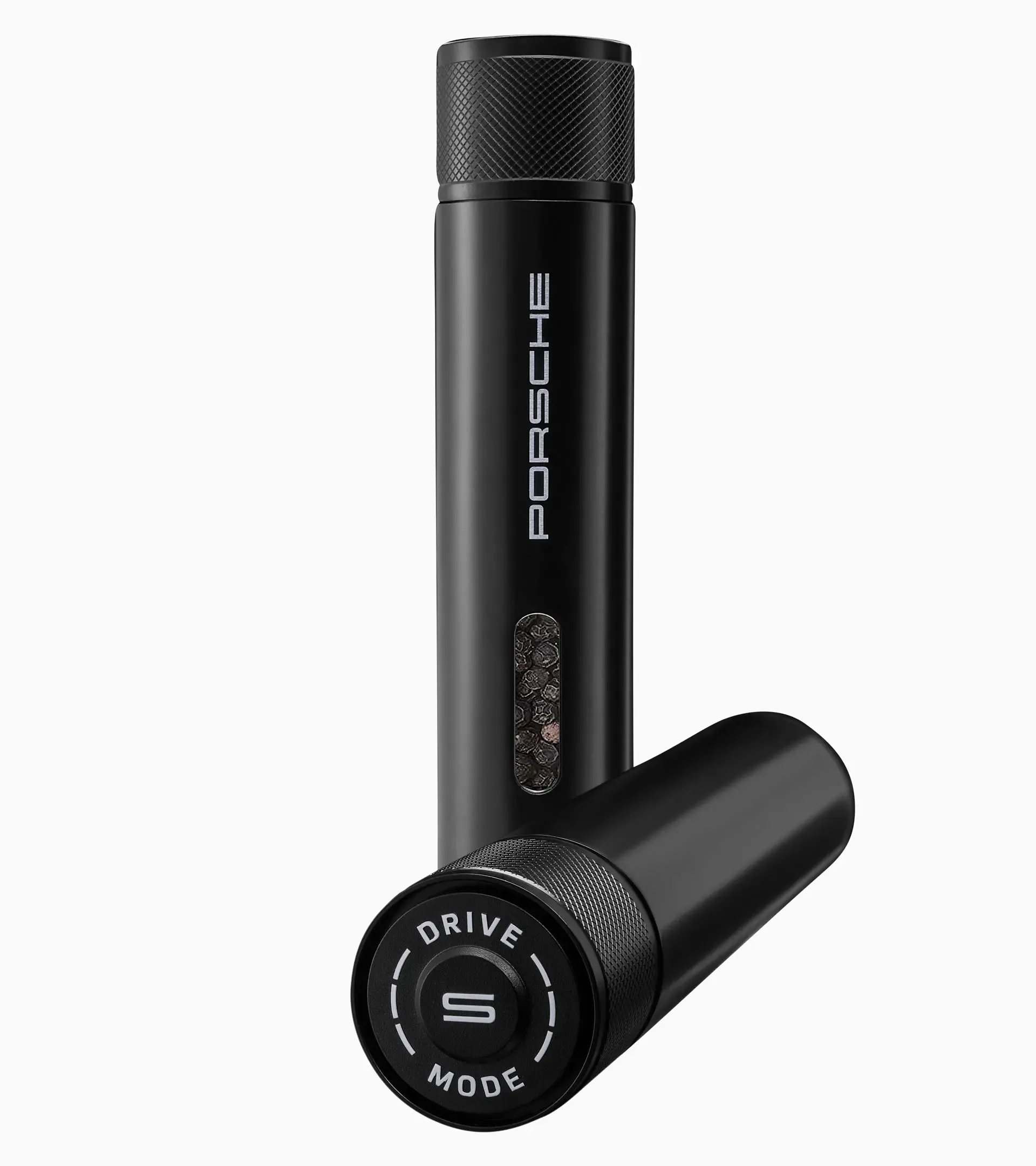 Control inspired by the Drive Mode buttonHigh quality ceramic millMechanical operationTwo-piece mill setWith lasered Porsche logo