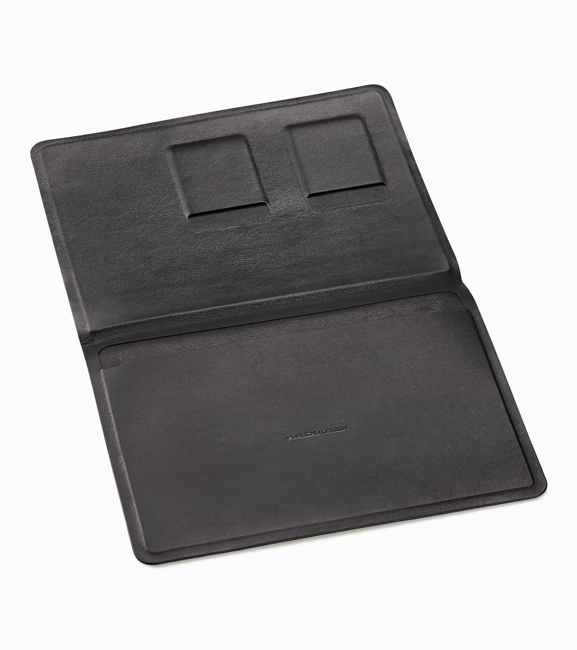 Minimalism—seamless, uncompromising. With the Seamless series, Porsche Design is redefining the term of purism in the field of men's wallets and accessories. The design of the lightly padded Porsche Design Seamless Tablet Sleeve M has no seams at all. Two large layers of the finest calfskin are cut precisely and bonded, the insertion compartment—suitable for the iPad 6 or similar sizes—as well as a small compartment for business cards or a connection card are precisely recessed. A haptic Porsche Design logo on the front and inside shape the minimalistic design. The softest tablet sleeve you've seen. A product that develops more character over time.