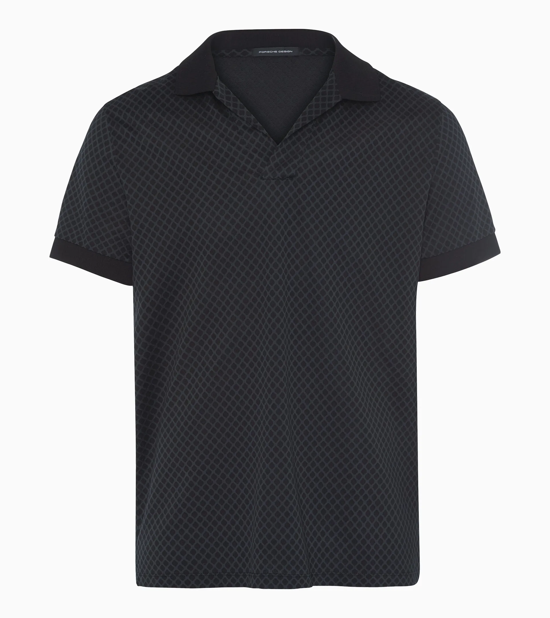 Exclusive jacquard polo shirt with Porsche hexagon design. Made in Europe.