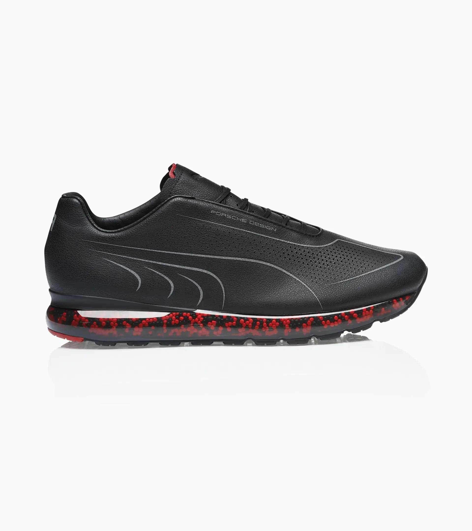 The perfect shoe for pacesetters: the Porsche Design Speedcat Jamming unites revolutionary shock absorption with a dynamic design. The unique, transparent midsole with free-floating colored RAW NRGY beads offers superior cushioning – and spectacular optics. An exclusive leather upper with laser-cut Details complements the dynamic soles. A shoe for long rides and lingering glances.