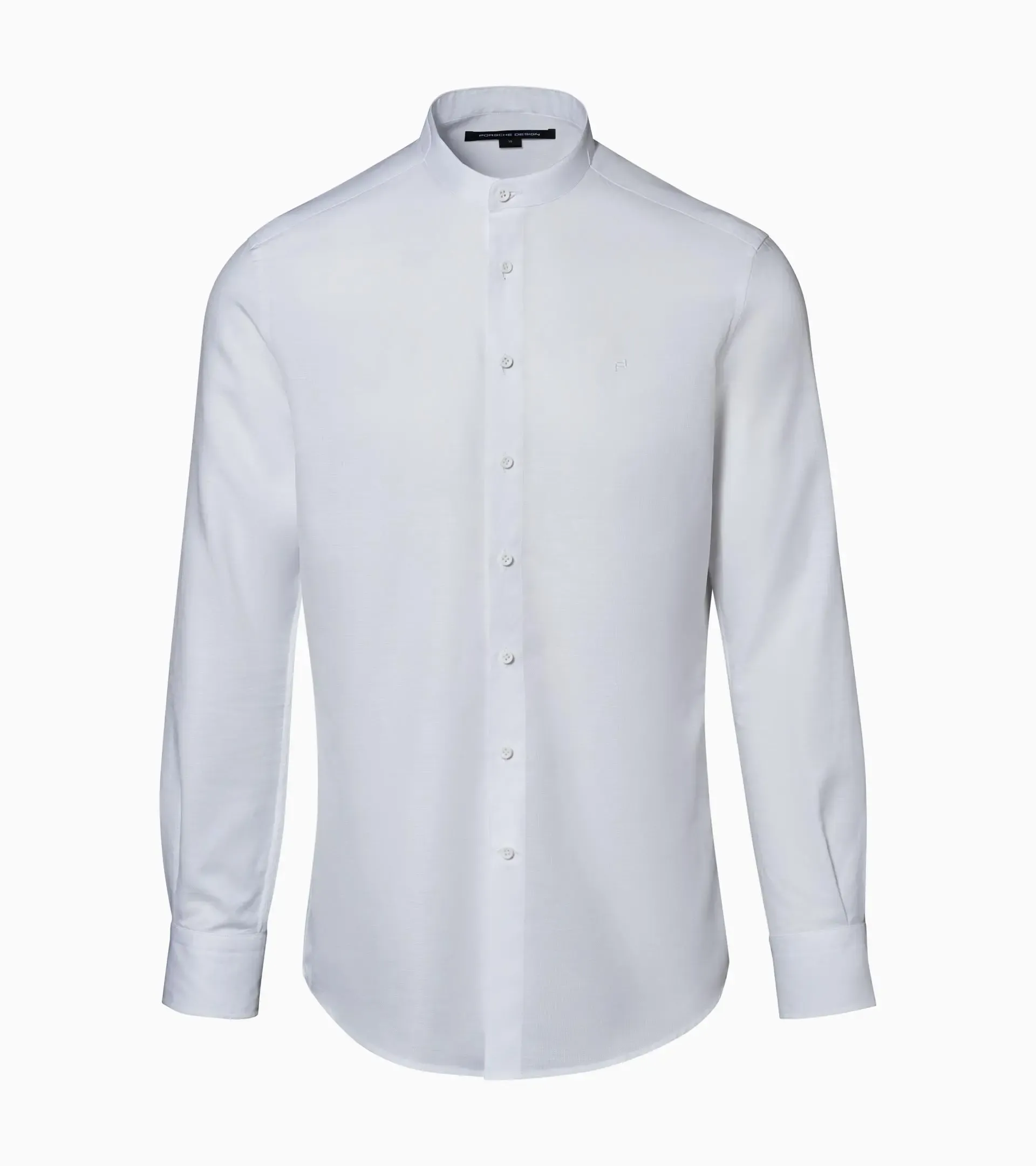 The shirt of the season: the Porsche Design Stand Collar Shirt. With its modern stand-up collar, closely tailored fit and high-quality outer material with a lightweight linen finish, this shirt lends polish to any casual look. Breathable cotton with a light mottled effect emphasizes the perfect fit of this men’s shirt while rubberized buttons and an embroidered PD Icon speak to its exclusive character. Pair it with the Porsche Design Cosy Driving Blazer for a laid-back formal combo. Or with the Porsche Design Eco Formal Bermuda for summery yet exclusive after-hours style.