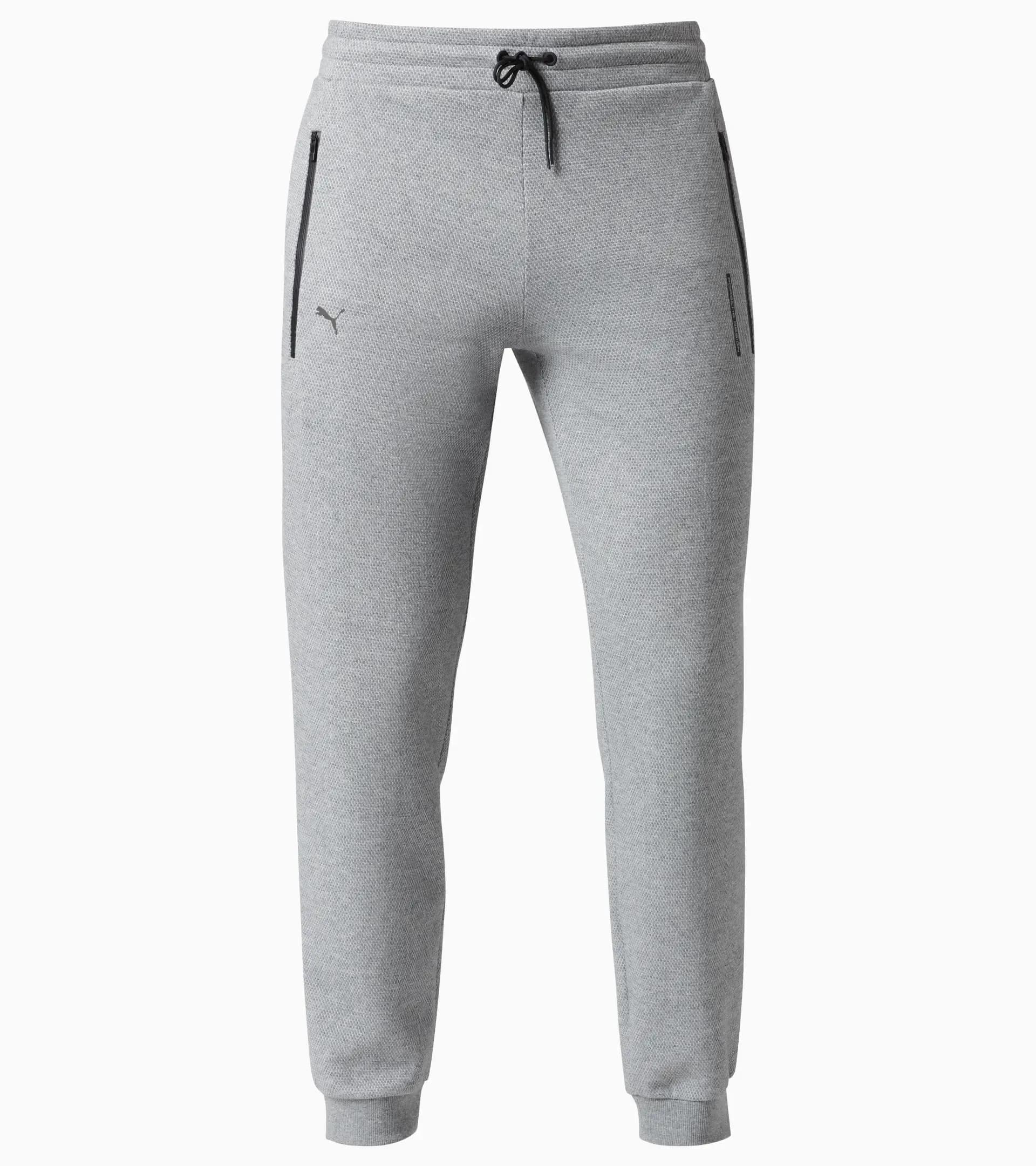 For training, chilling, and traveling... The Porsche Design Sweat Pants, made from a technical-inspired jacquard knit, are an upgrade to everyone's comfy favorites—they feel relaxed but look exclusive. What makes these sweatpants unique is their exceptional detail: the hexagon pattern, a throwback to Titan's crystal structure, the dynamic lines under the zip pockets, and the refined cut of the concealed pockets in the back. The soft, drawstring waistband and knitted cuffs ensure the perfect fit. For the ultimate relaxed look, pair these pants with the matching Sweat Hoodie Jacket or Sweat Jacket and Sneakers.