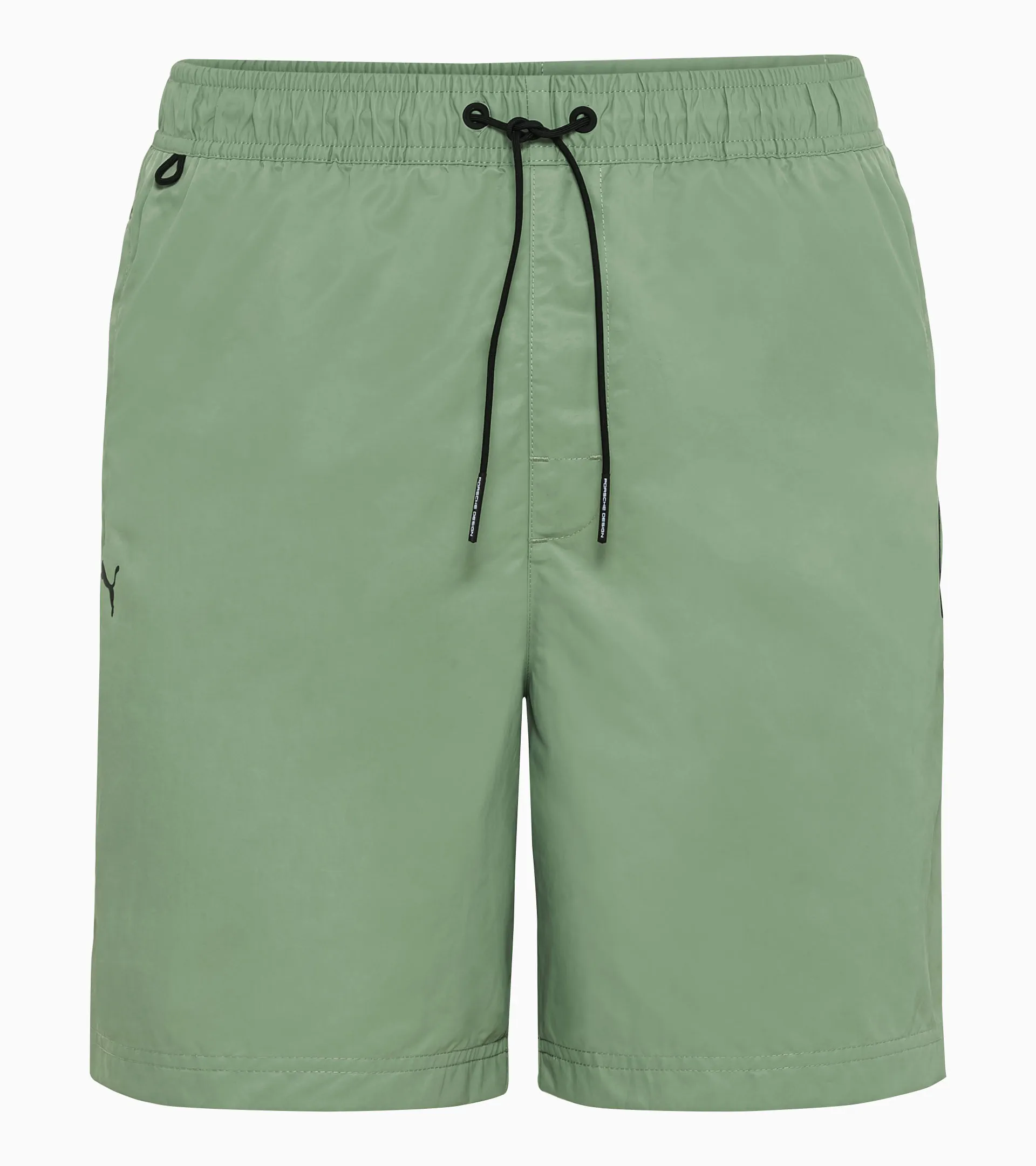 Take a dip: these Porsche Design swimming shorts have anti-chlorine and moisture regulation, so are perfect for a quick refresh or longer training sessions. Their fast-drying fabric, elastic waistband and the contrasting mesh slip mean that you won't be short on fun or comfort. The contrast loop on the front is a clever detail for quickly and easily taking sunglasses, keys or other items with you. Two mesh pockets with concealed zips and a coin pocket round off the sporty look. Visual details come in the form of the Porsche Design cord ends and the rubberised Porsche Design eyelets, both of which can be individually adjusted.