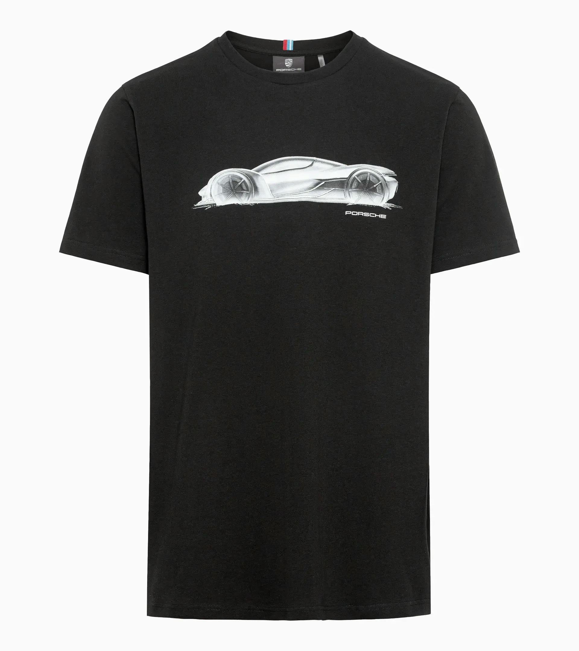 Exclusive Porsche cotton T-shirt with printed sketch of the Mission X hypercar.