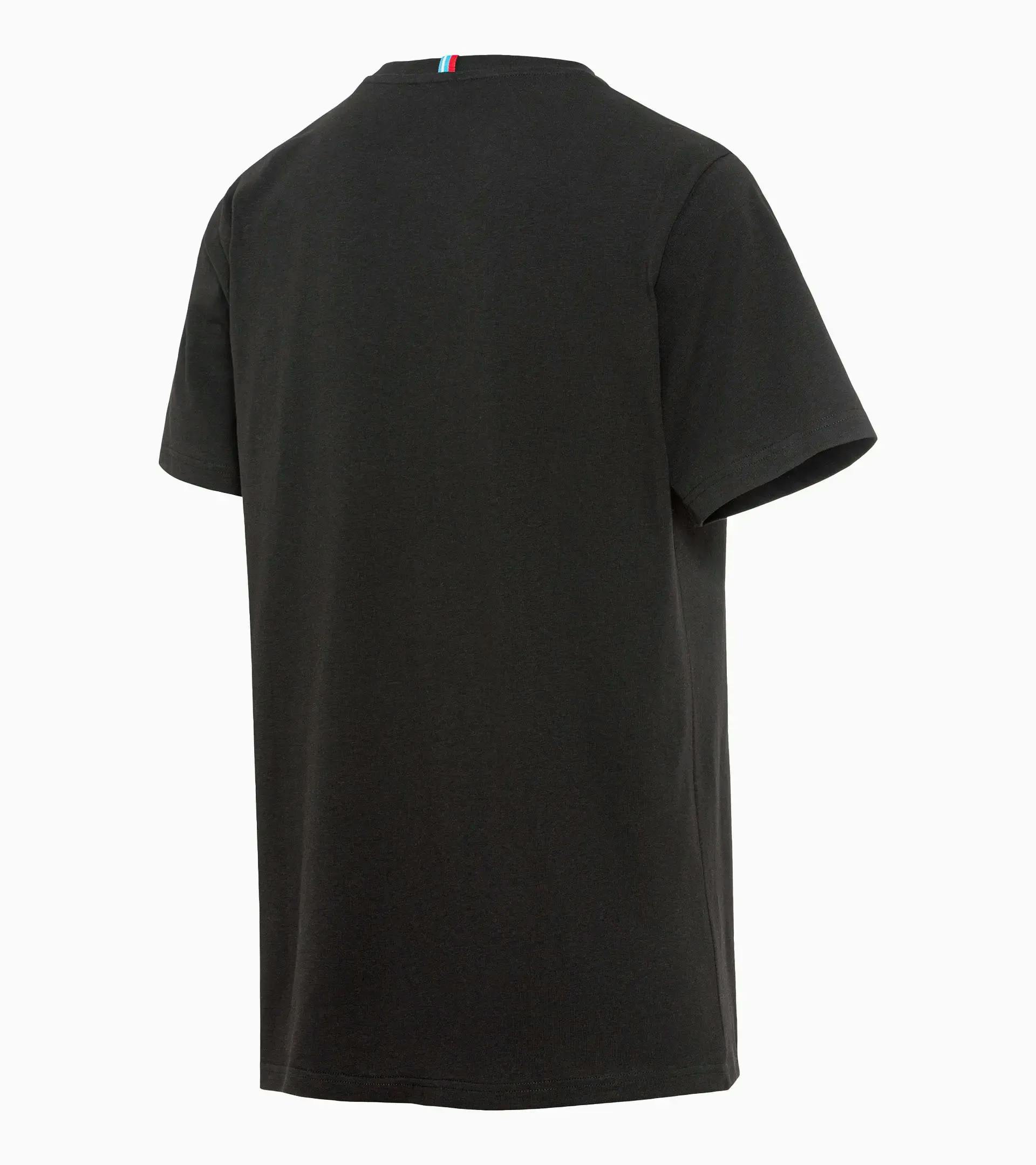 Timeless and futuristic at the same time: the high-quality T-shirt combines a clean design with a sketch of the spectacular Porsche Mission X hypercar. The elaborate screen print on the chest is a real eye-catcher and makes the shirt a must-have for all sports car fans. With elegant striped taping at the neck in the 75Y anniversary colours.