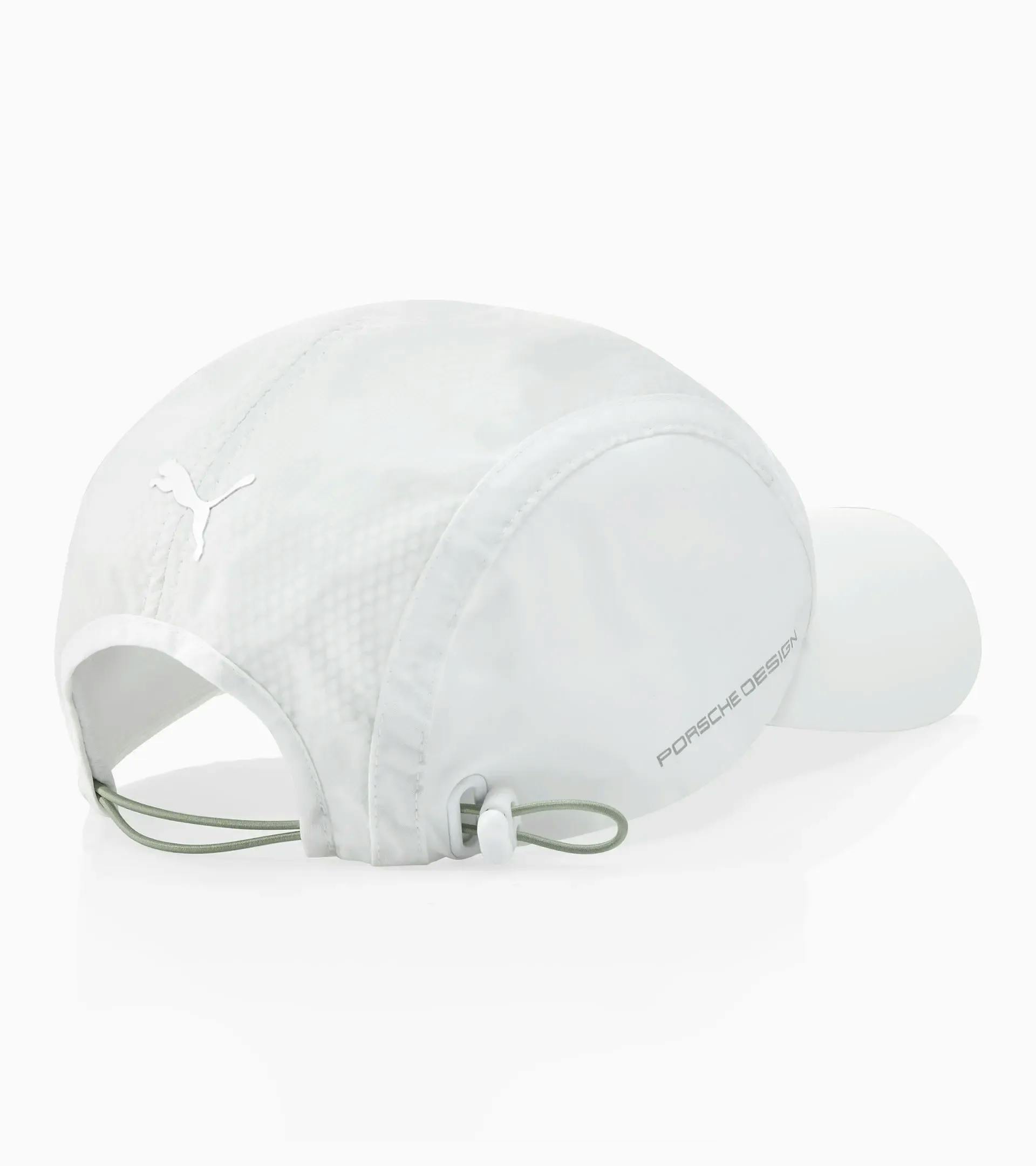 Modern 5-panel cap with bungee fastener and Porsche Design logo.