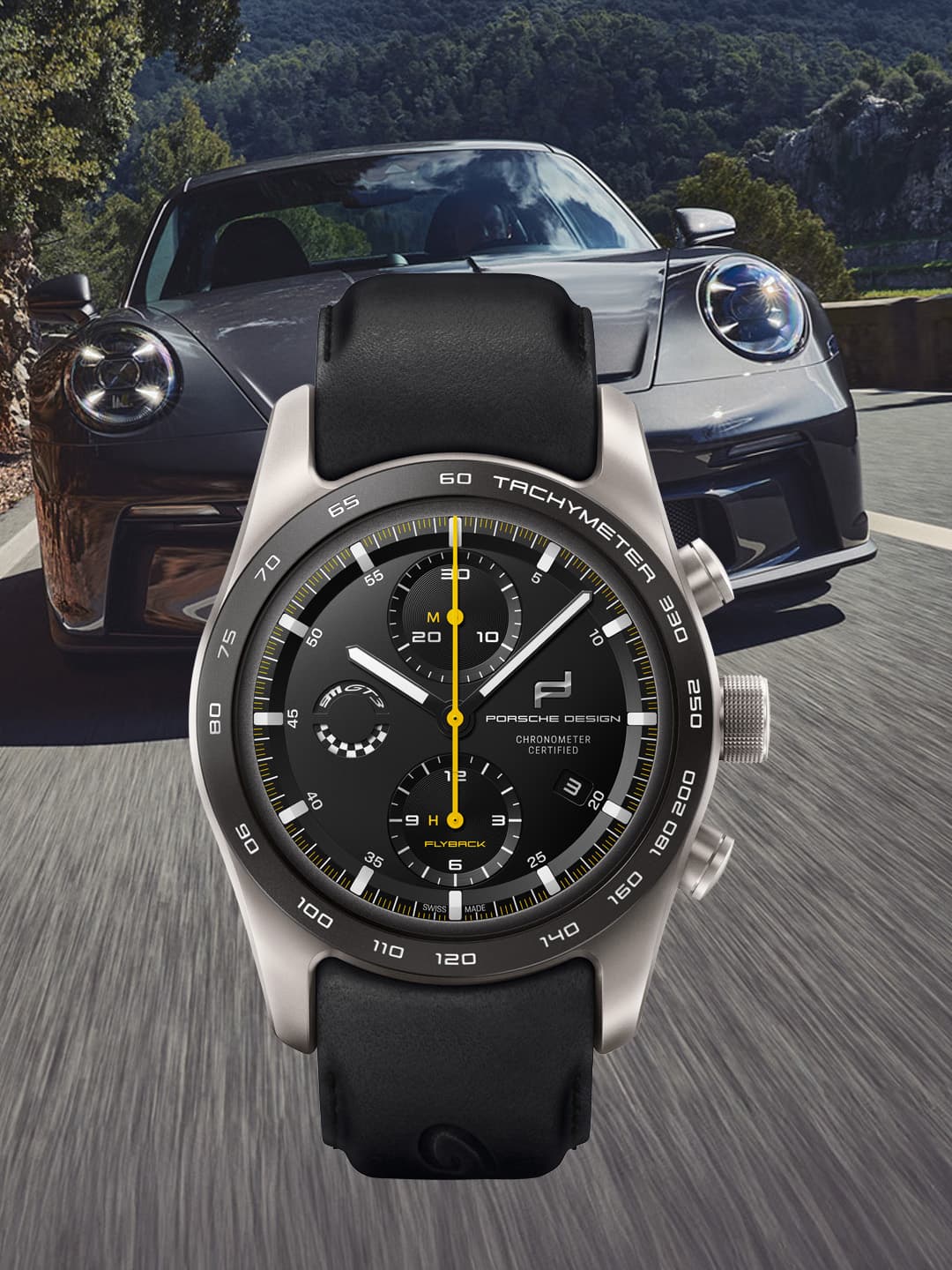 Owners of GT models, special models or Exclusive Manufaktur models can have their personal Porsche Design Chronograph exclusively manufactured to match their sports car. The individual and unmistakable features of the respective Porsche model are incorporated and transferred to the design, materials and color scheme of the chronograph. The watches are strictly limited to the number of vehicles produced and are manufactured in the in-house factory according to customer orders.